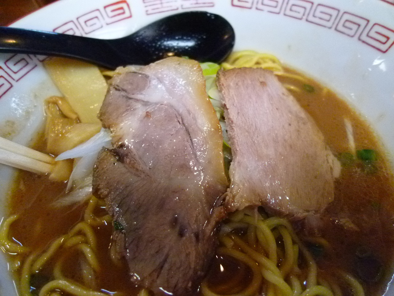 とんこつに魚介がそれぞれに主張し油が更に力強さを与える濃厚スープ。醤油がきりっと利いててやっぱり美味いですね。ただ、スープ量が少ないのが全飲み派には不満かも。