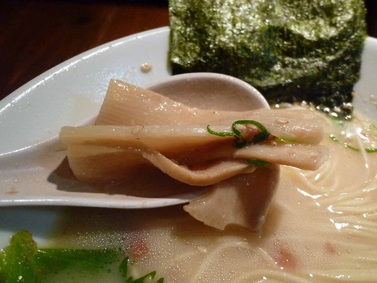 メンマはクセなくこりこり歯ごたえ。程よい味付けが違和感なく食感の口直しになってます。