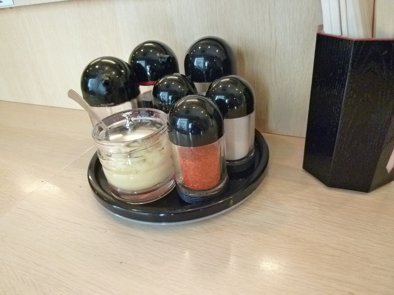 卓上調味料に変わったものはないかな。でも、ここで餃子食べてる人見たことない。