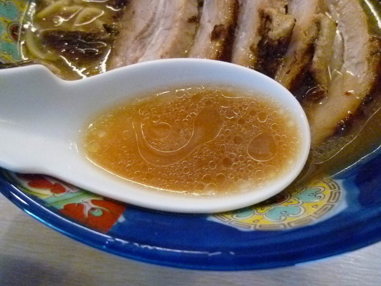 とんこつベースに強めの醤油。しょっぱい一歩手前なくらいな塩分濃度ですがダシが濃厚で油感があるんでガツンとくる醤油スープといったところですか。初見で旨く、中毒性もあり駅前立地なら行列が出来てもおかしくないかも。