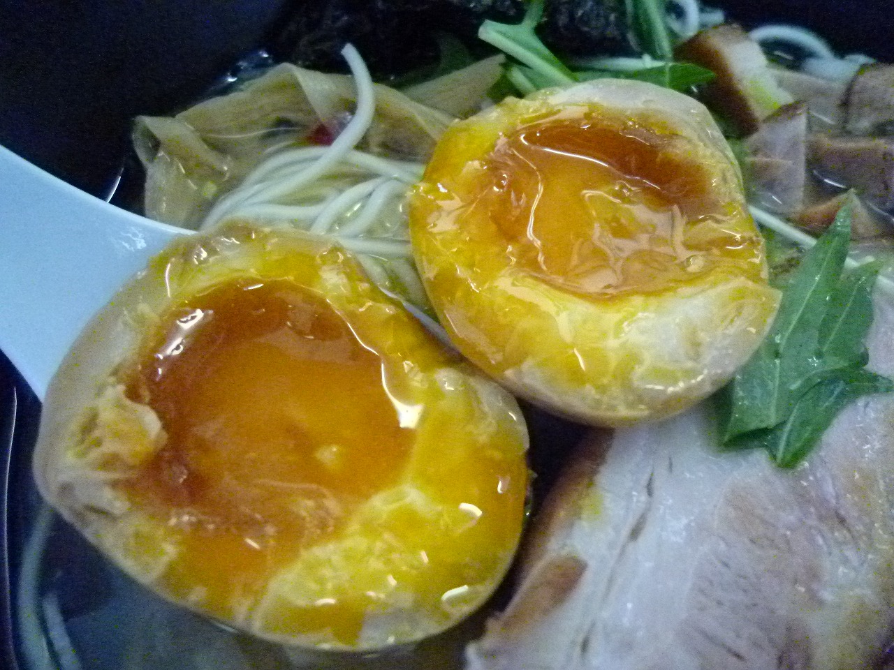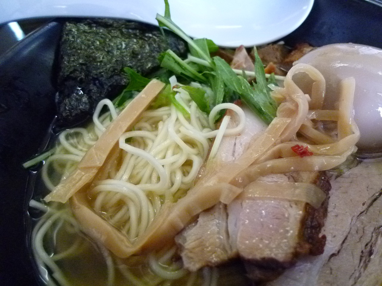 味玉は素敵な半熟にしっかり濃いめの醤油味。塩ラーメンに醤油の味玉ってなんか2度美味しい気分になれるんだよなぁ。