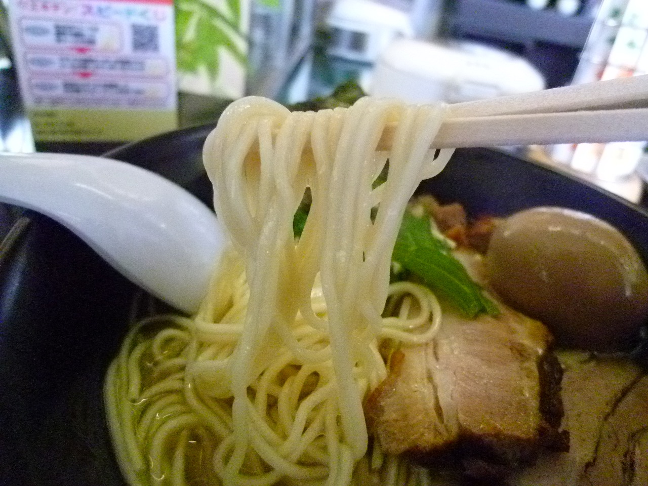 麺は低加水細ストレート。ちょっと固めな歯ごたえでスープをよく吸ってきます。