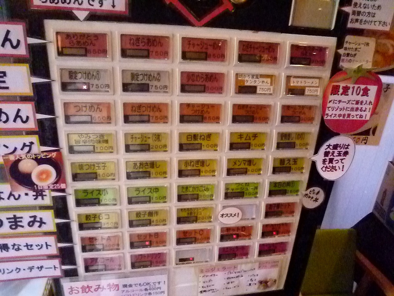 入って左手にある券売機。新たな麺メニューが出てないかと期待しましたが今のところ前回と同じラインナップのようで。担々麺はさすがに勝浦の看板を外しましたか。正解だと思います。