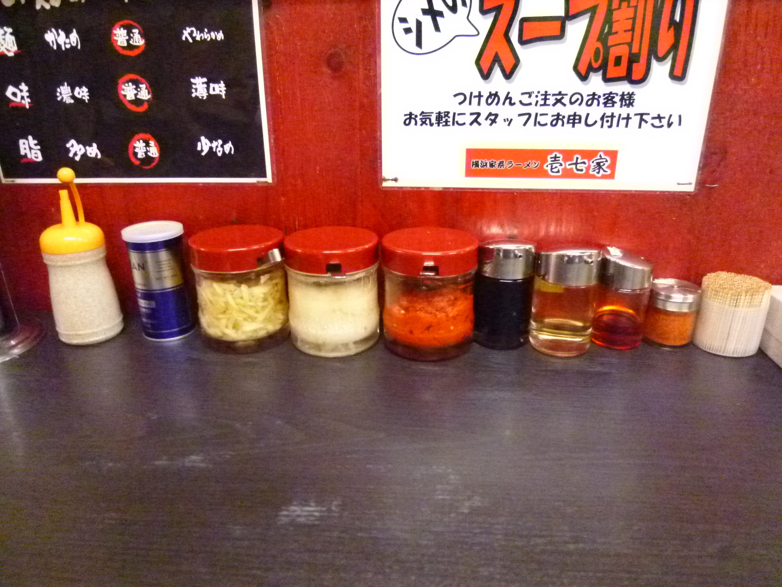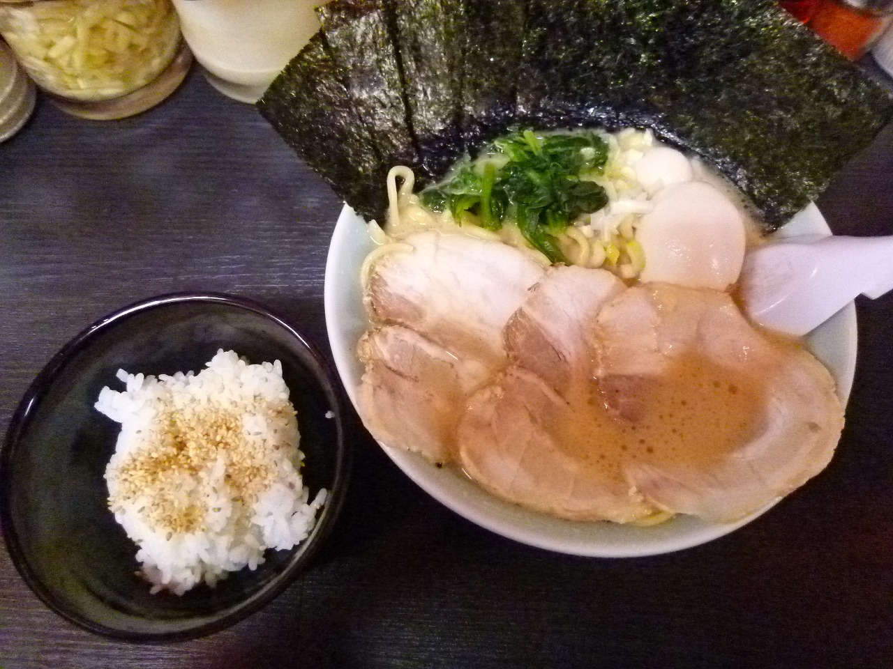 とんこつ醤油を基本に塩が基本。つけ麺はとんこつ魚介と家系つけ麺から選べるようになってます。こちらでは麺類注文でライス無料食べ放題のサービスが用意されてます。