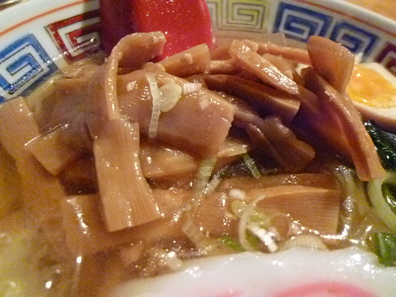 あれ?ってほどたっぷり入ってたメンマ。柔らか食感に濃いめの味付けでごはんに合いそう。胃袋を鍛えられたら小ライス注文でメンマ丼をやってみたい。