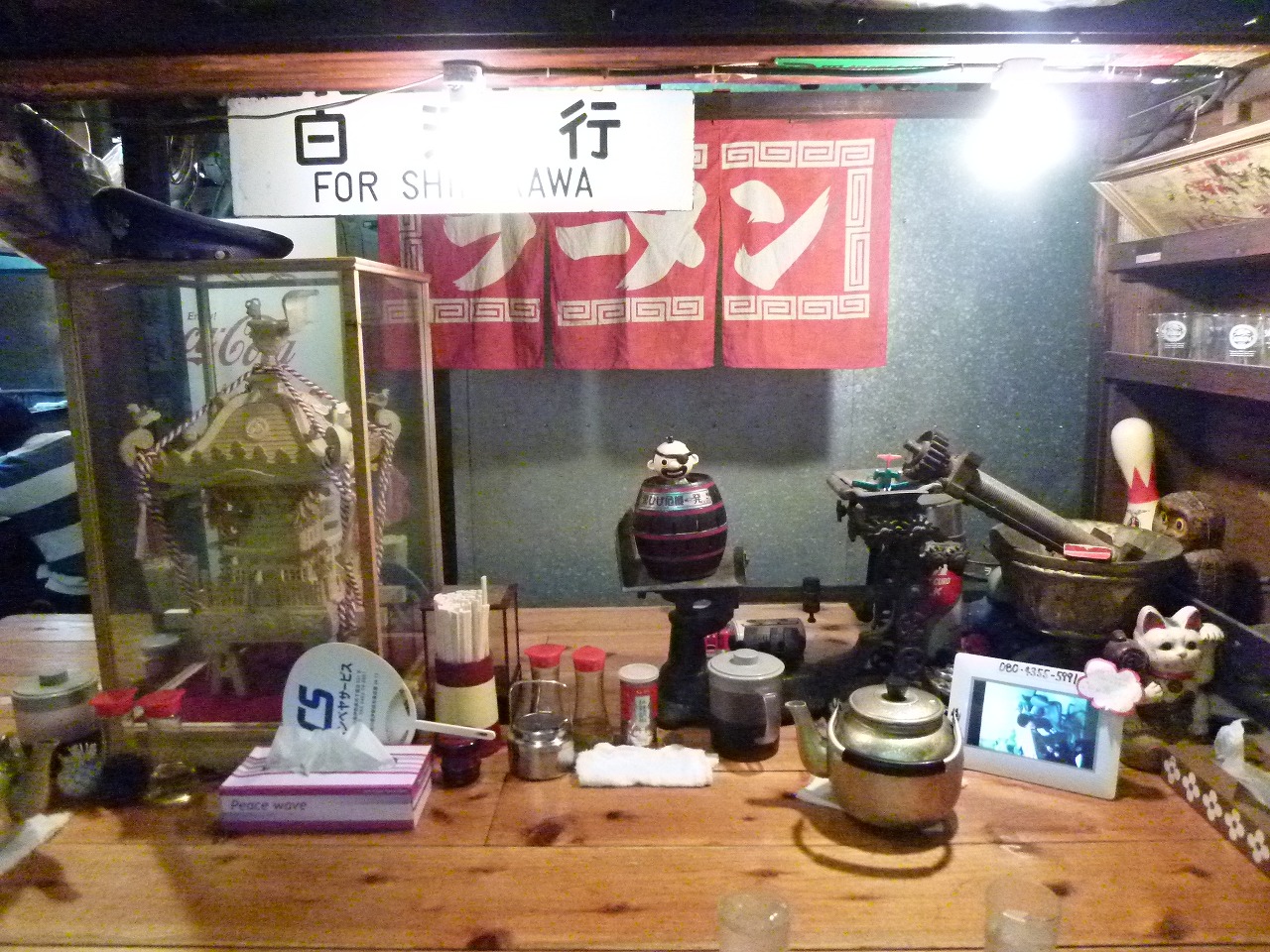 店舗奥屋台席の全景。遊び心満点ですね。そもそも出自の味噌一が屋台出身なわけですがそこを表現してるんだと思います。