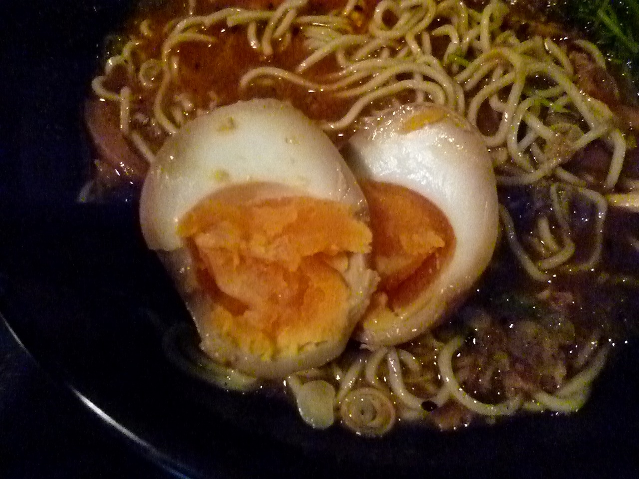 味玉はやや固めの半熟に甘めの味付け。固ゆでと半熟のいいとこ取りしてる味玉ですね。