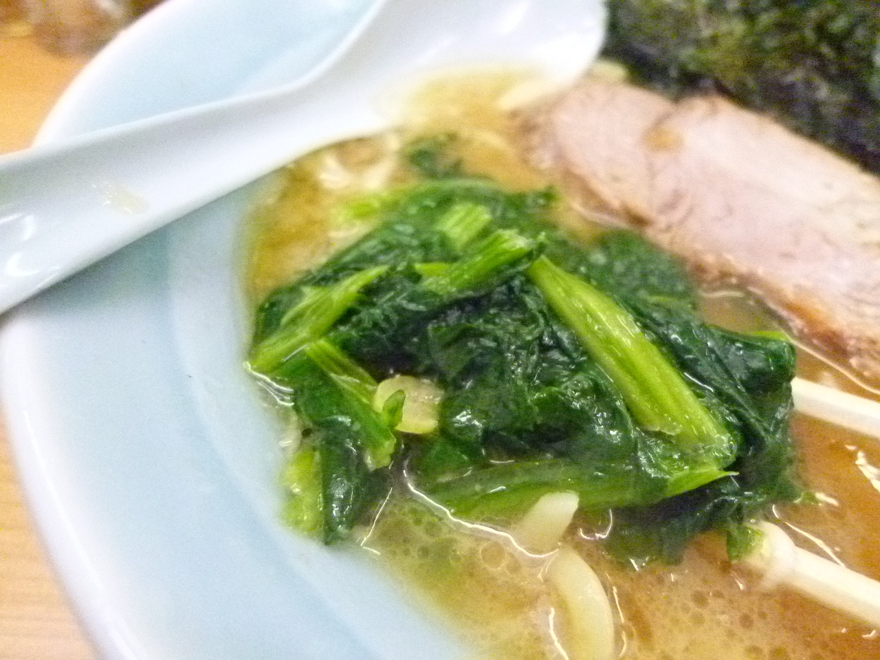 スープはとんこつがっちりに醤油が利いてるバランスが取れた優等生。ブレが少ないのが特徴でいつ行っても美味しい家系のスープを味わえます。