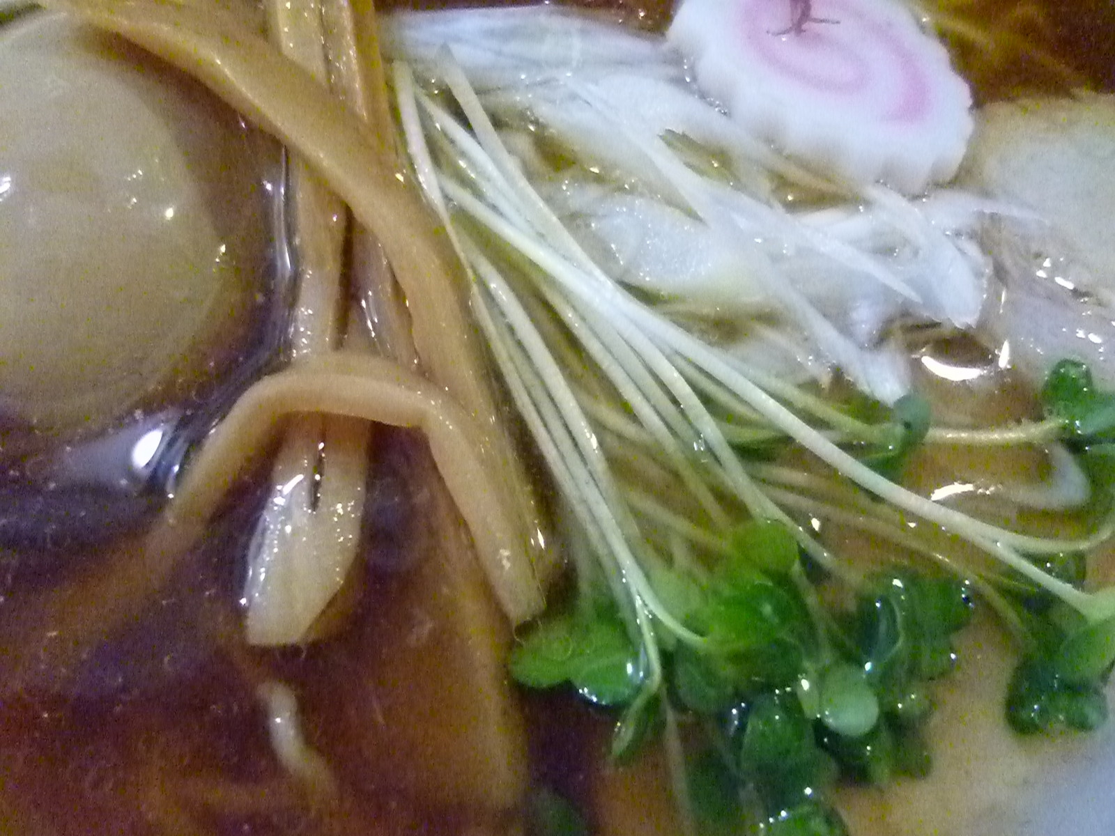 塩に比べて魚介を感じない醤油のスープ。まさに昔ながらの醤油スープといった印象で初めてなのに懐かしい。う〜ん、じんわり旨いなぁ。回ってくる揚げネギの香ばしさがいい仕事をします。