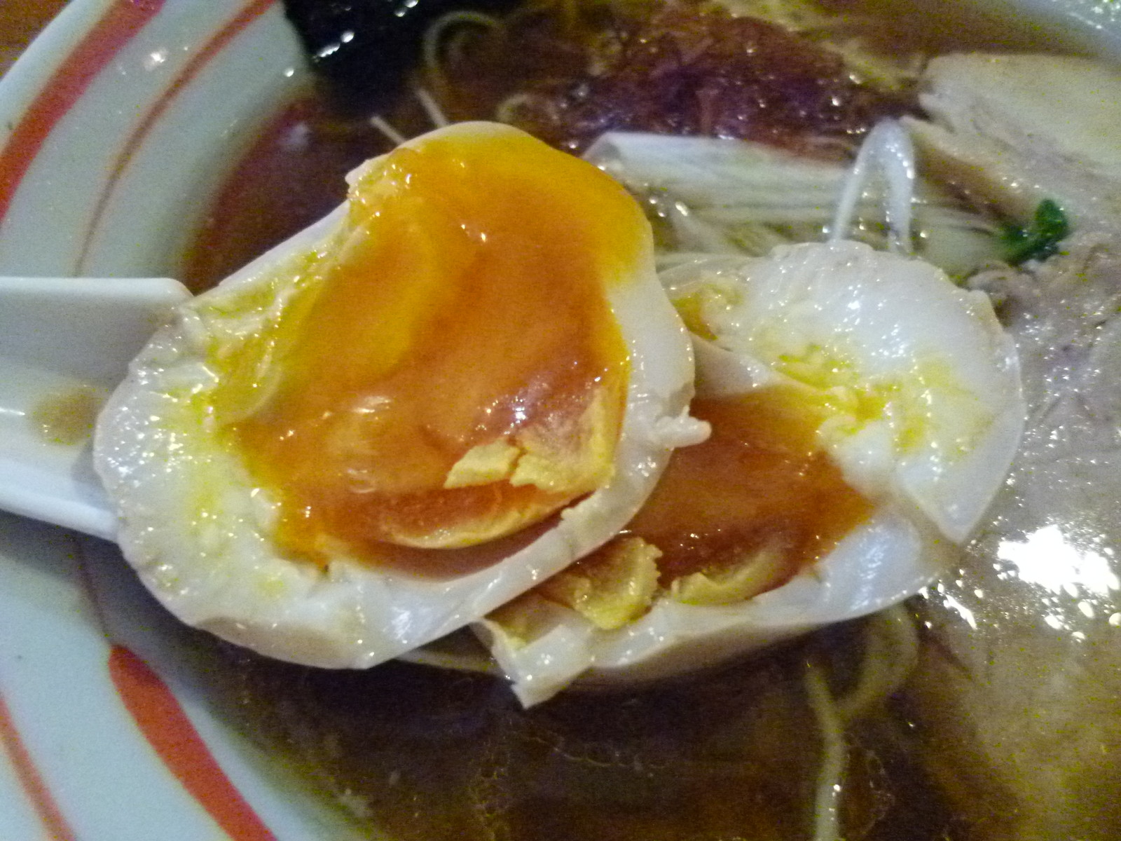 味玉は素晴らしい半熟加減にきりっと濃いめな味付け。黄身が大きく玉子の風味が口の中に溢れます。これはもう満点レベルですね。どっか良い玉子を使ってるのかなぁ。