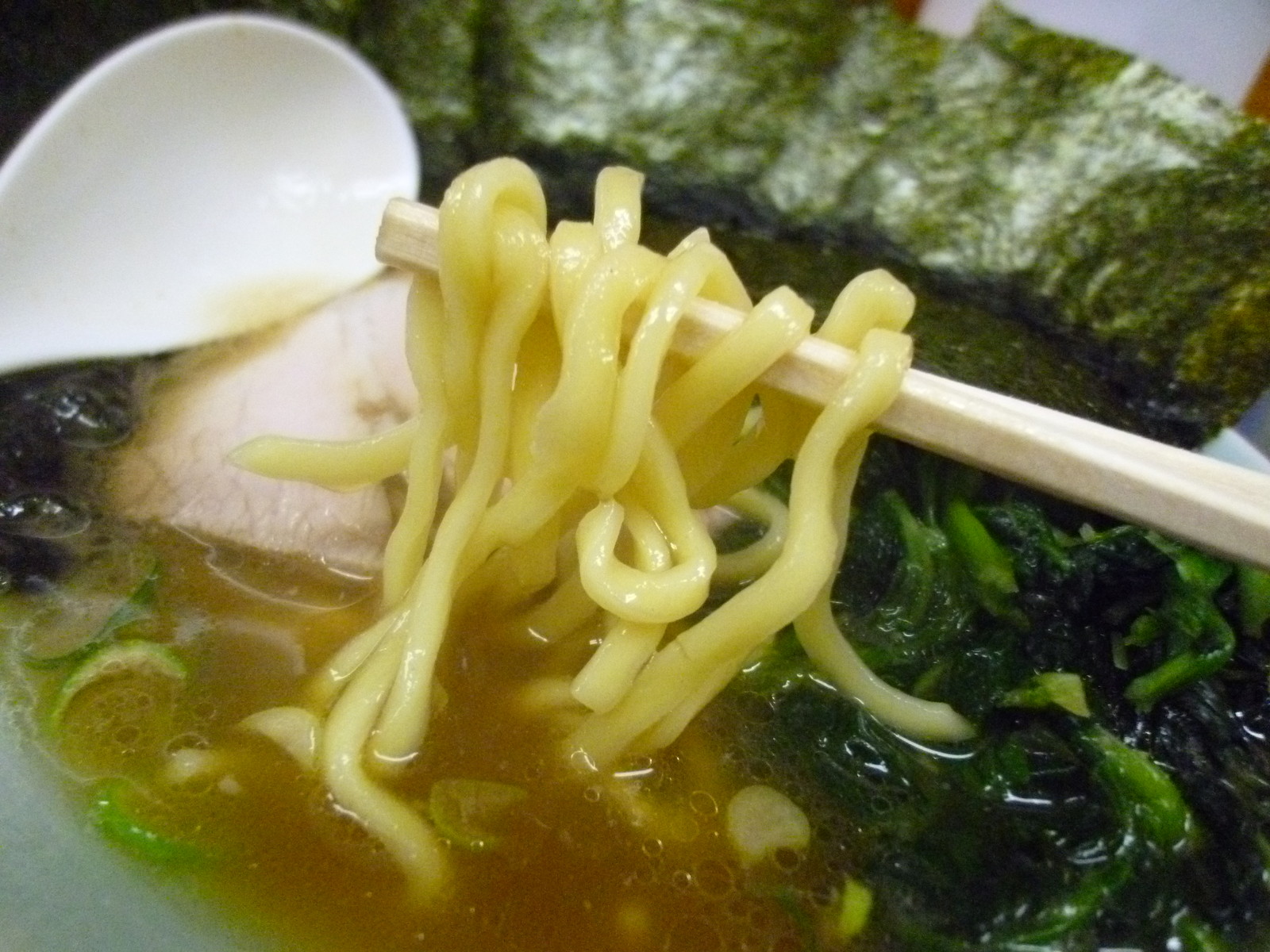 スープはとんこつベースに鶏も利いてて醤油がばちっと利いてます。ちょっと直系も感じさせる味わいで正しく家系のスープに仕上がってますね。文句の付けようがありません。前々回まで油少なめで注文してたのですが普通が1番良いですね。鶏油にも味があるのを勉強させてもらいました。