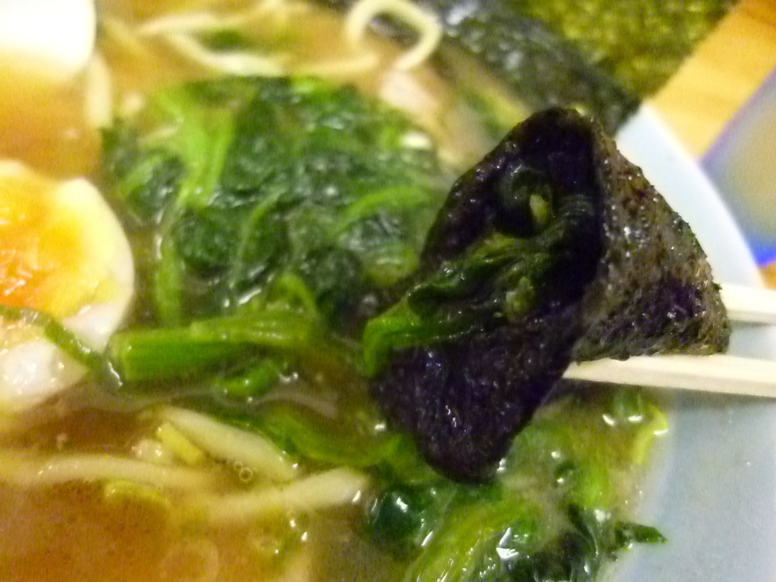 家系定番のほうれん草。こちらはいつも超たっぷり!並の家系の軽く2倍以上入ってきますね。いや、下手すりゃ3倍か?