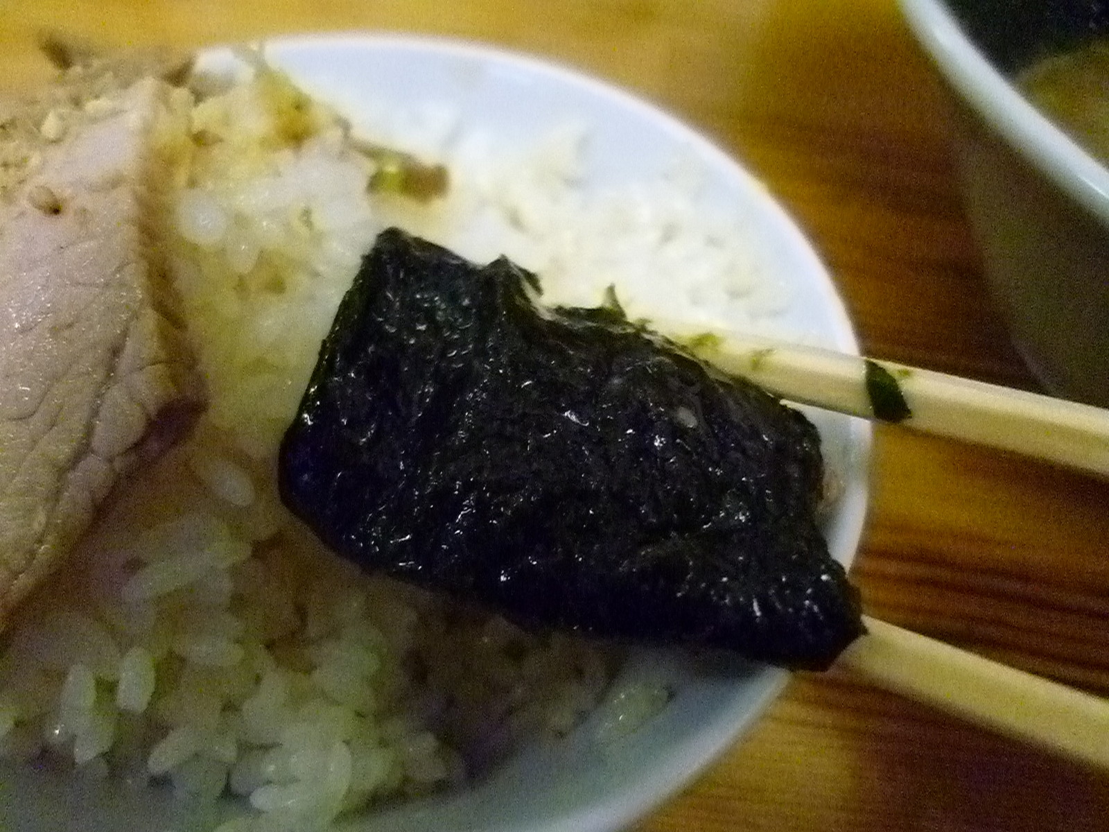 今回のチャーシューは中型2つに細切れなのが出るわ出るわ。普通にチャーシューメンと同じくらいのボリュームがありますね。モモで歯ごたえしっかり噛みしめて旨みとぴりっとした塩気が染み出てくるチャーシューです。しかし、真価を発揮したのは後のことでした。