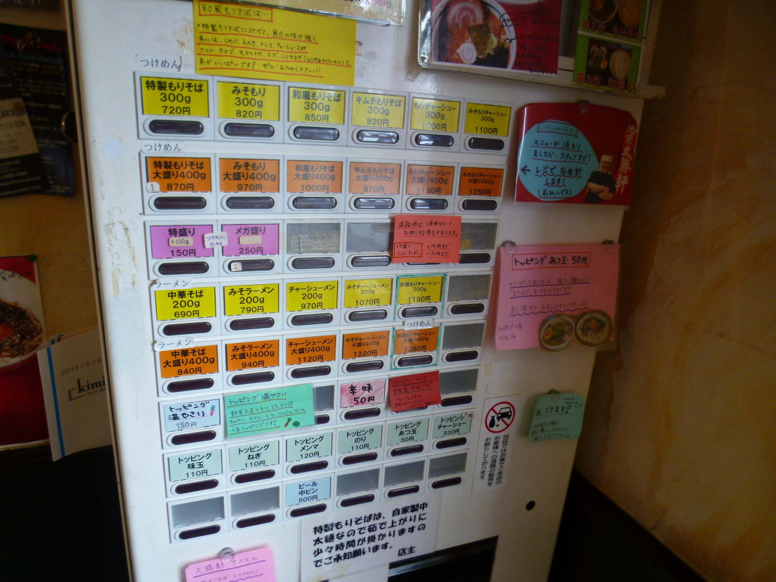 入って右手にある券売機。つけ麺であるもりそばを基本に中華そばとあって味の方は醤油と味噌。塩に関する記述が見当たらなくなってたけど休止中なのかな。大変に美味しかったんだけど。