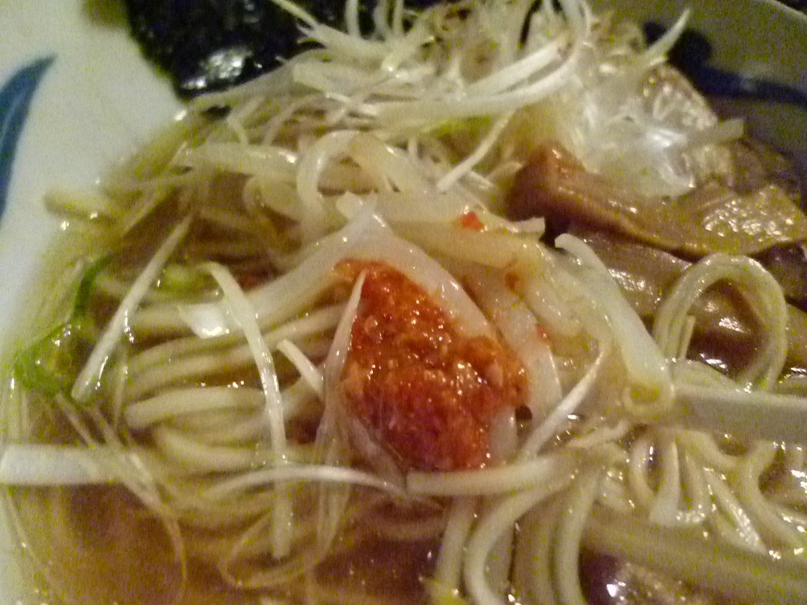 ぽきぽきもやしに守られるように入る生唐辛子。これがじわじわ回ってスープを変えていくんですねぇ。わりかししっかりした辛さになるんですが唐辛子の辛さと風味が回ったスープもこれまた旨いものでして。ねぎの鮮烈さもいい仕事をしておりますです。
