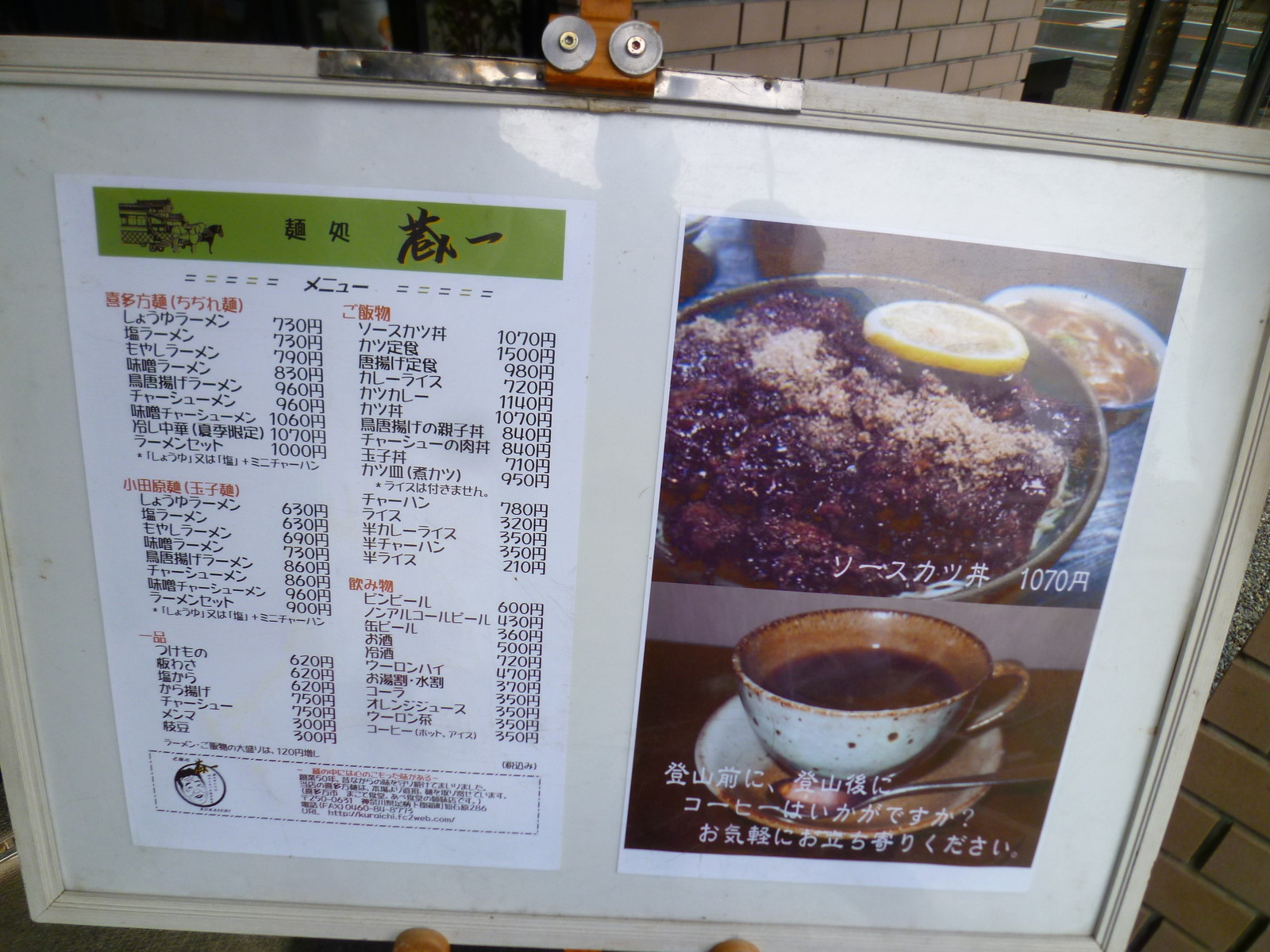 店頭にあったメニューです。本場喜多方の有名店の姉妹店でラーメン以外に丼ものも豊富です。ソースカツ丼も自慢のようですね。