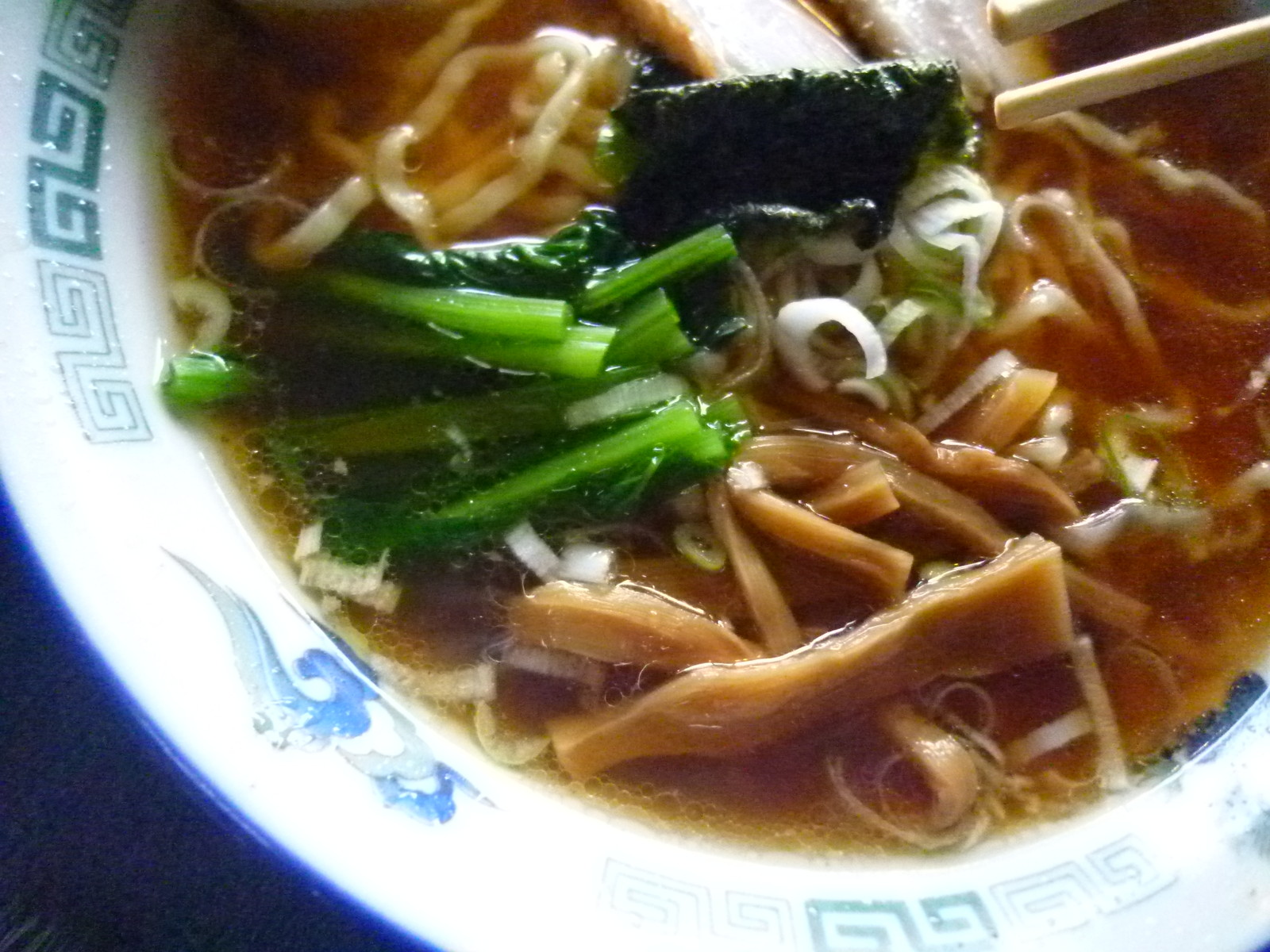 メンマはコリコリ。ほうれん草はフレッシュで風味豊かなものでした。