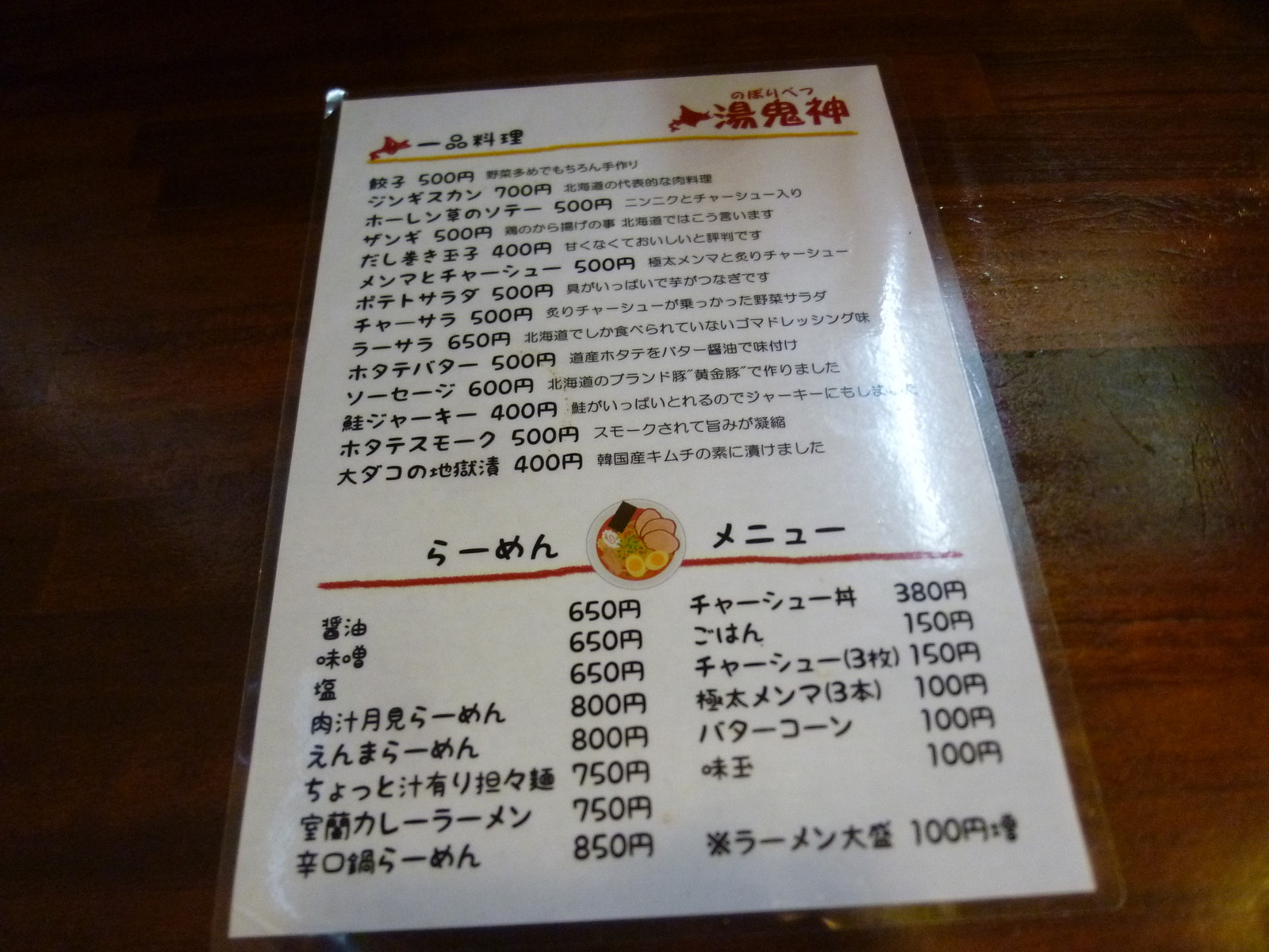 喰の道場内の登別ラーメンのお店です。湯鬼神に行ってきました。