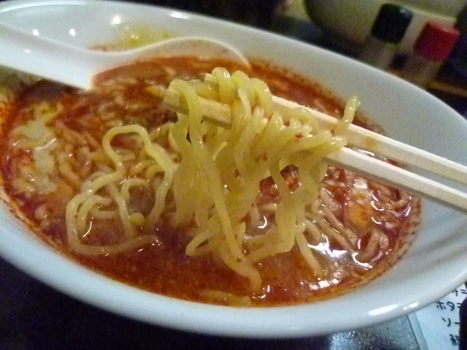 醤油ベースにラー油の辛み、食べ進めると芝麻醤が回って担々麺っぽくなります。それなりに辛いので苦手な人は注意かな。