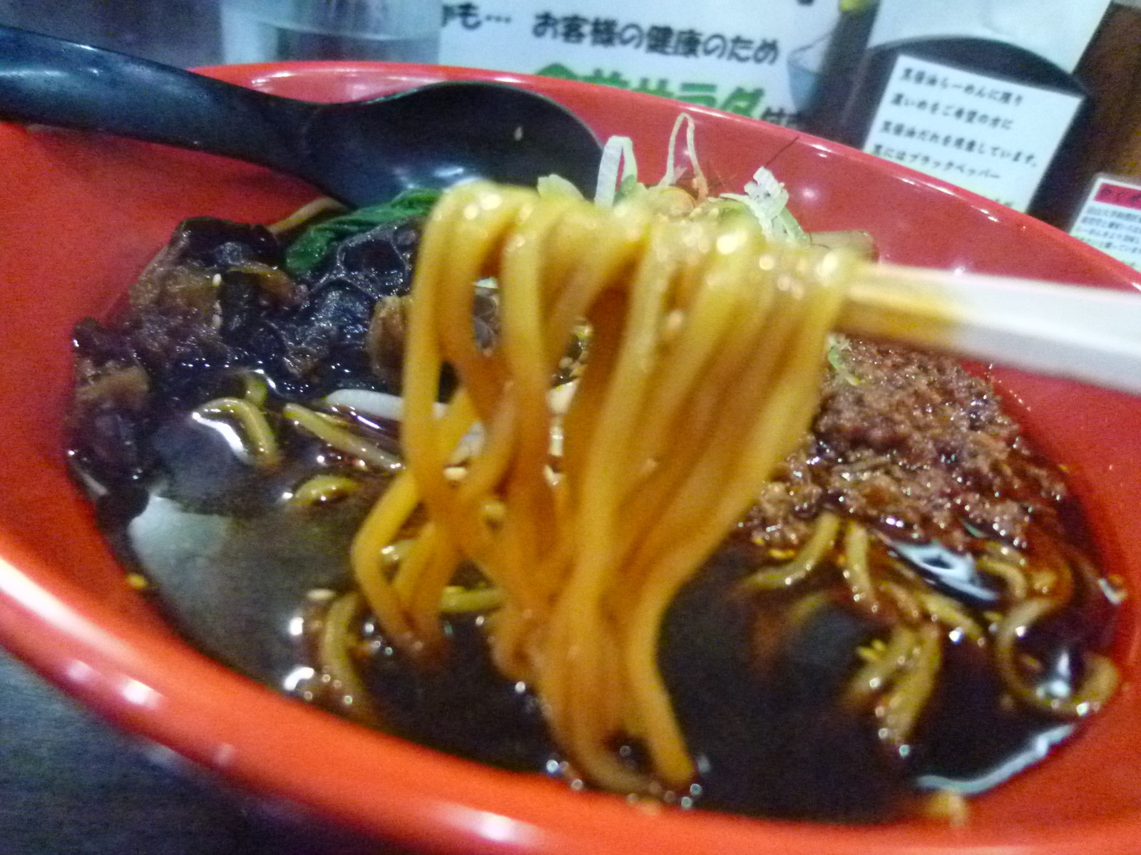 ちょっと引いてしまうくらい真っ黒なスープなんですが意外にしょっぱくなくすいすいと飲めちゃいます。醤油の風味が強く記憶に残りやすい味ですね。