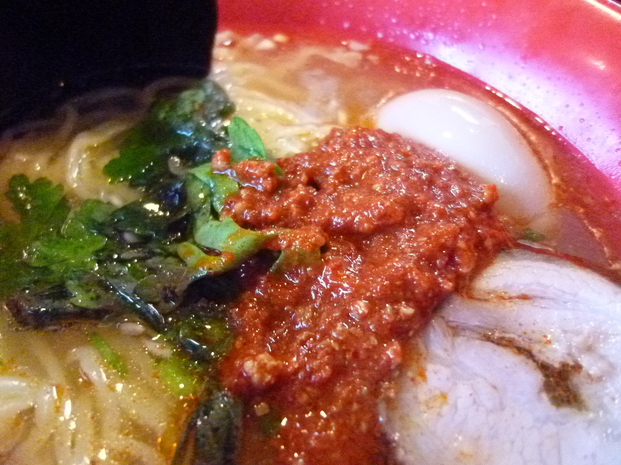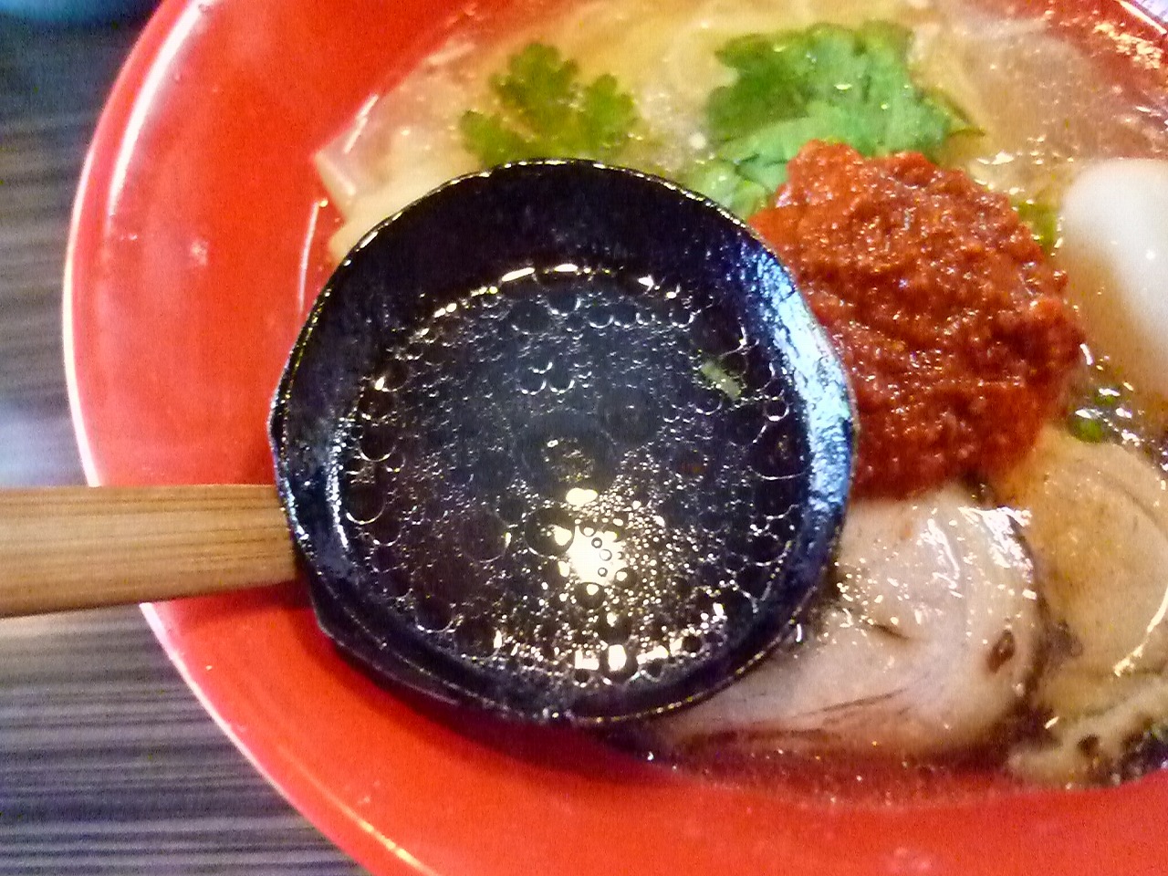 澄んだスープは特にどれかが主張するわけではないもののじんわりとした奥深さ。赤丸ダレを溶く前なら基本の味も楽しめますね。