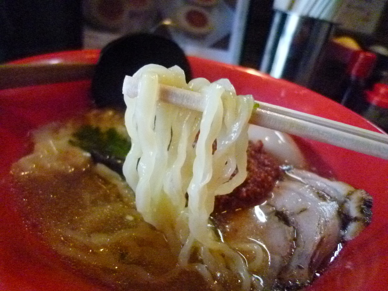 麺は中太平打ち縮れ。踊るようなすすり心地に固め加減のしっかり歯ごたえでスープがよく絡んできます。