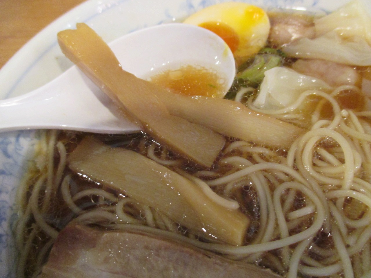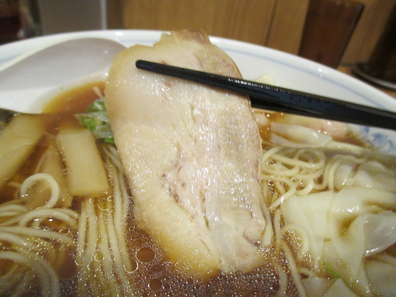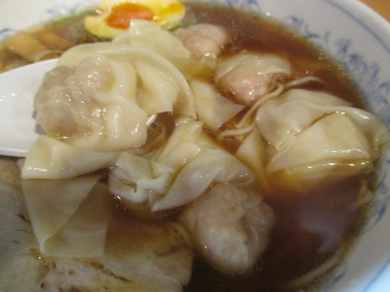 ワンタンは170円で5個入ります。このワンタンはいいですねぇ。ぴろぴろの皮にちょうど良い味付けがされた肉肉しい具がかなりの旨さ。メニューには見当たらなかったけど単品でも食べたいワンタンでした。