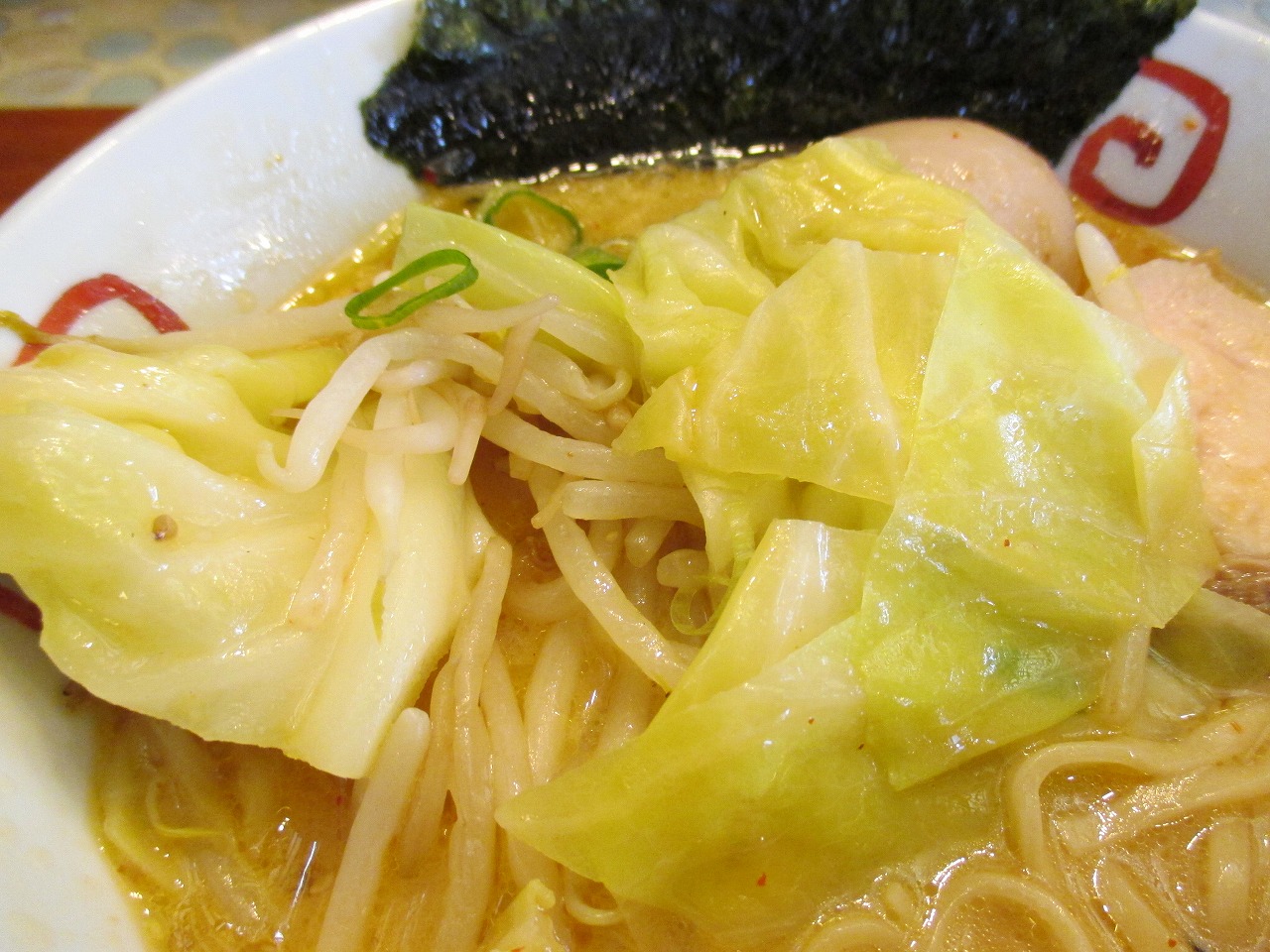 野菜はおおぶりキャベツにぽきぽきのもやし。特にキャベツの茹で加減がちょうど良くてキャベツとはこんなに甘いものかと思わされました。
