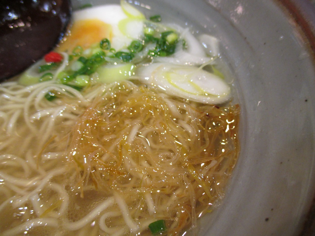 脇には細切りの揚げねぎと笹切りの白ネギに小口切りの小ねぎと3種のネギが入ります。揚げねぎはほんのりとした香ばしさに甘さで目先を変える、白ネギはちょっとのネギ辛さにシャキシャキとした歯ごたえ、小ねぎは爽やかさとそれぞれに役割があって面白かったですが、クコの実らしき赤いのはなんだかいつの間にか無くなってました。