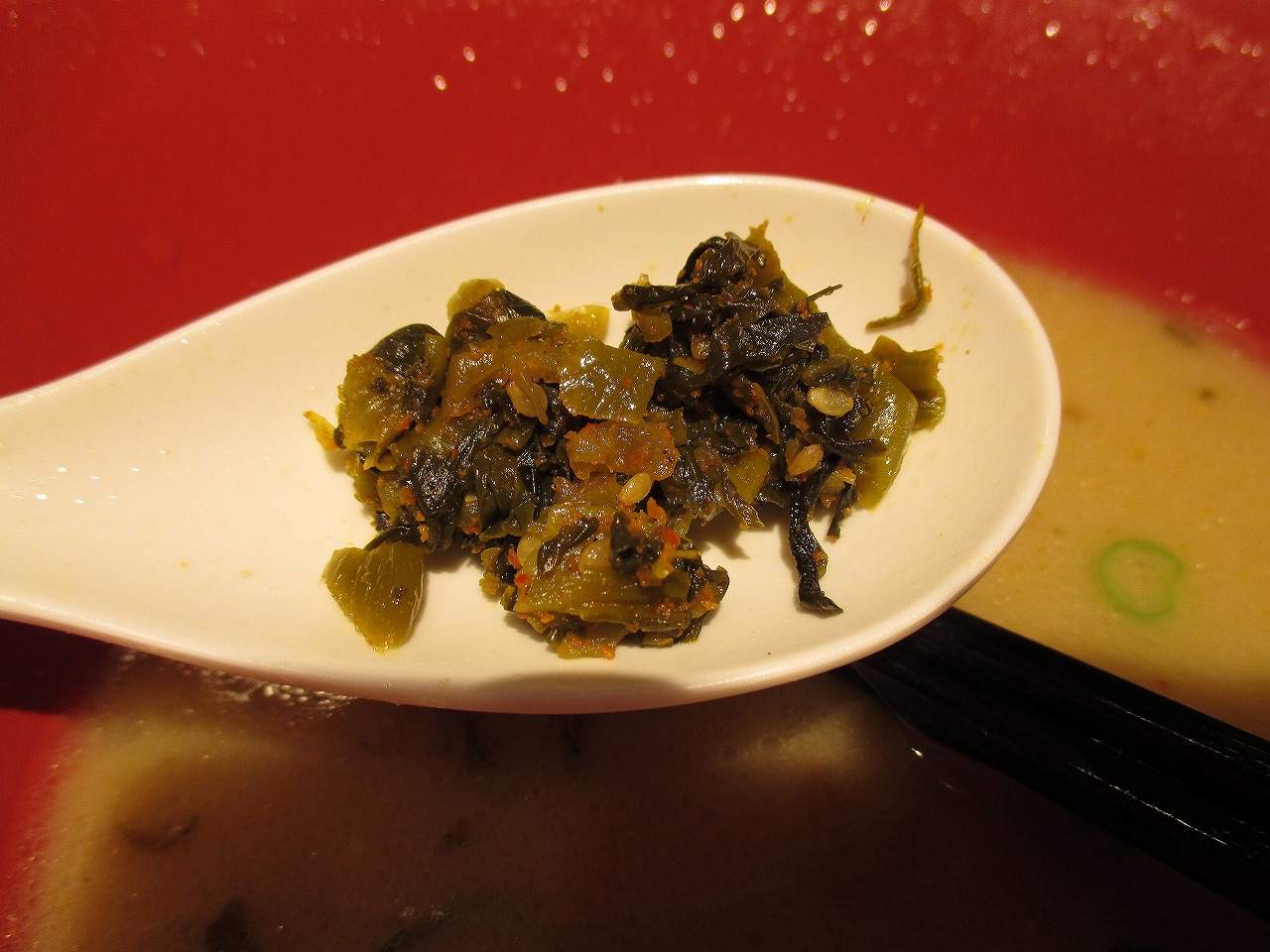 高菜を入れて味変えです。実はもやしを入れ忘れました(^-^;)