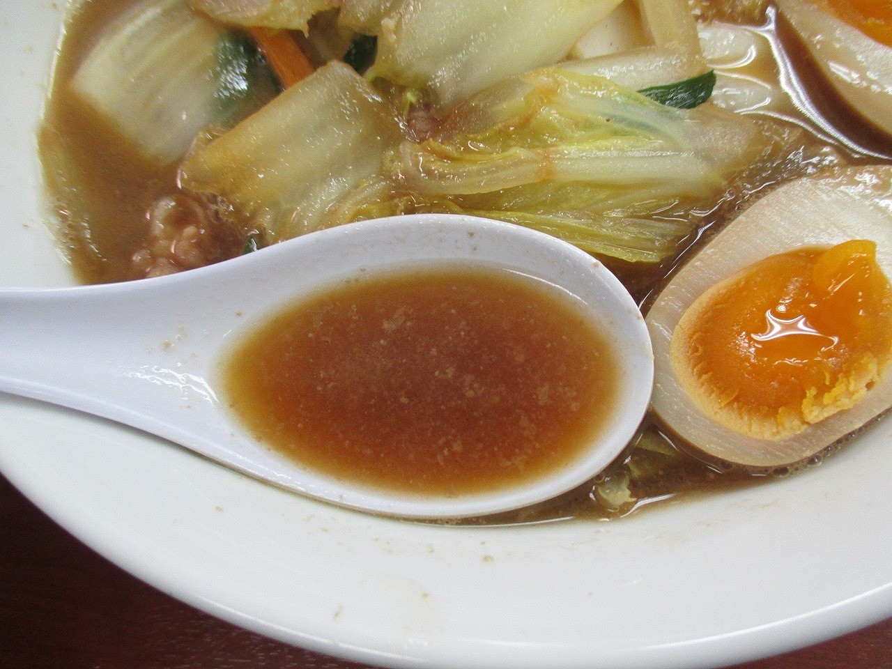 白菜を中心にした野菜炒めにスープを合わせているようでとんこつ醤油のスープに甘みと風味がプラスされています。ただ、気のせいかと思うんだけどどことなく味噌っぽいようなカンジがして悪い意味じゃなく首をかしげてしまいました。