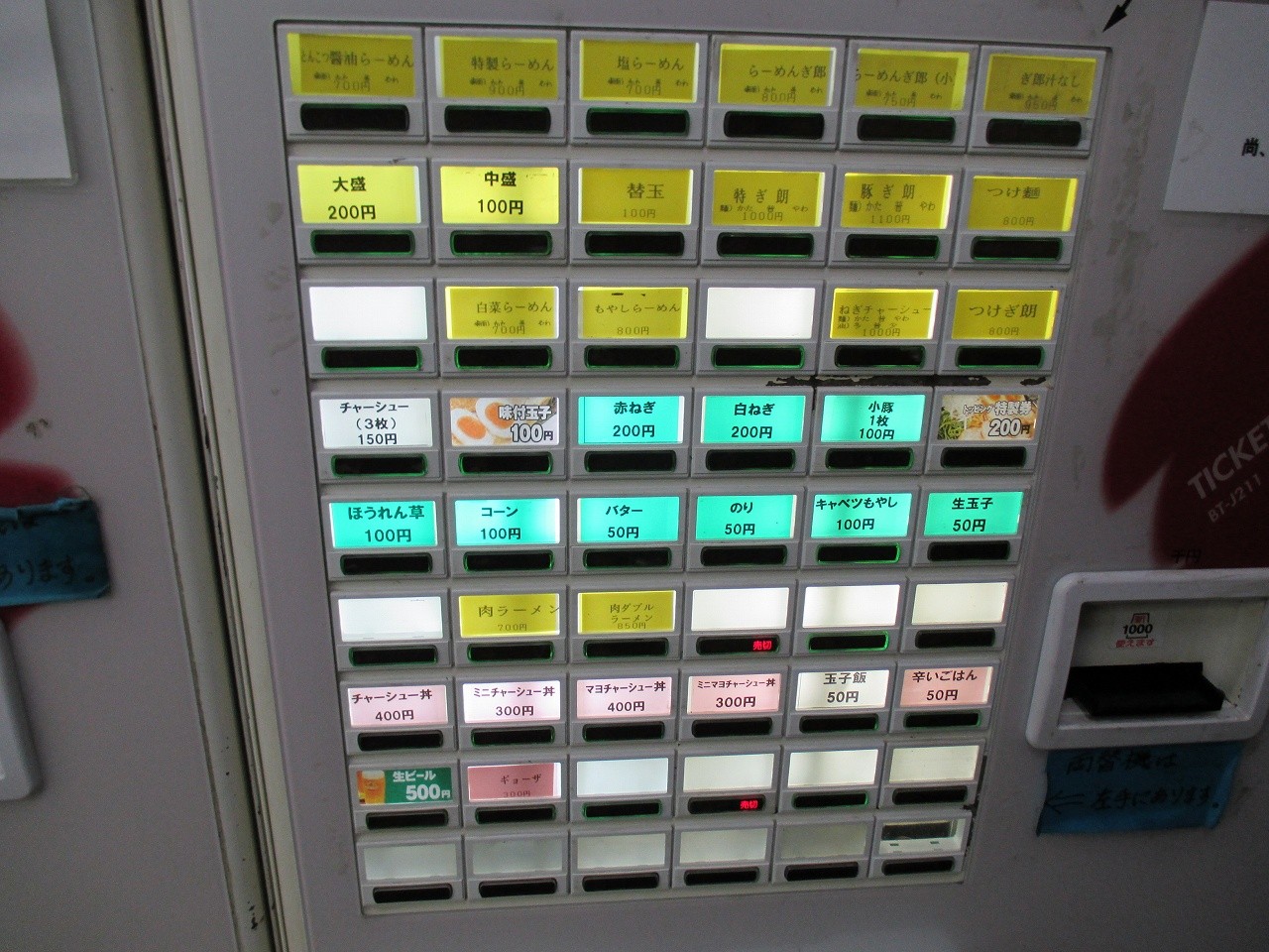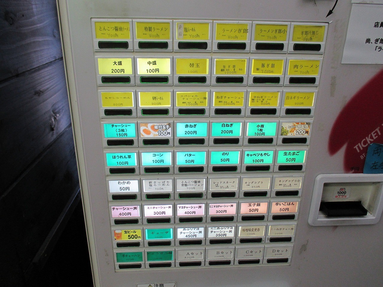 入って左手にある2台の券売機。一見同じなように見えてその実少しの違いがあったりします。麺類注文の場合に限りライス無料で食べ放題、ぎ朗の場合は野菜増しと選ぶことも。ちなみに増税と光熱費・材料費の高騰によりラーメンや一部メニューを値上げしたとの告知がありました。