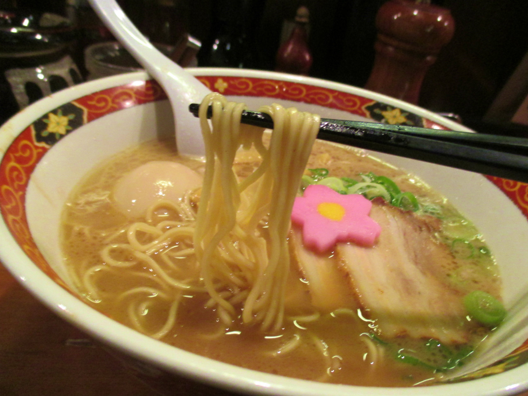 和歌山ラーメンと言えばとんこつ醤油との認識ですがやはりこちらでも基本は間違いないようで。驛麺通りでは各店で限定を出してますが時期ごとに異なるのでその辺はお店で確認してください。