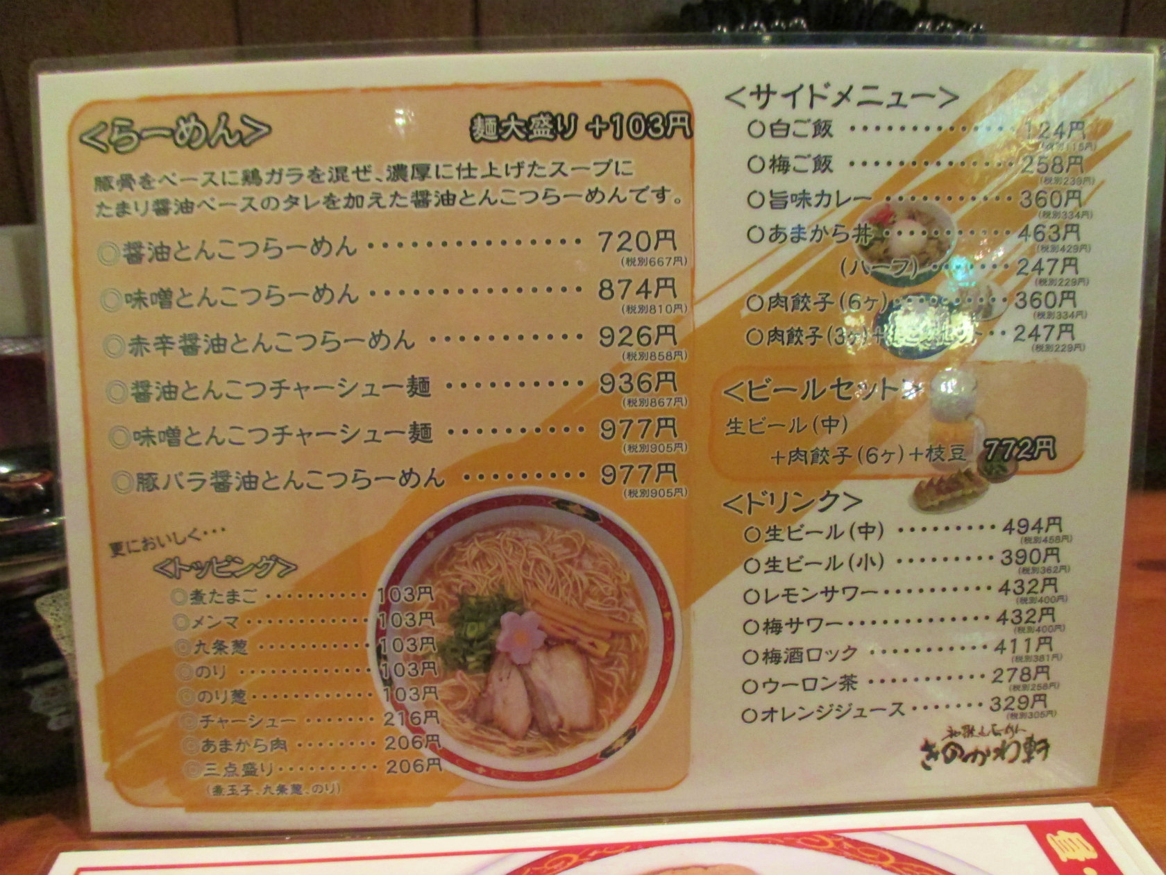 醤油とんこつらーめん¥720+煮たまご¥103