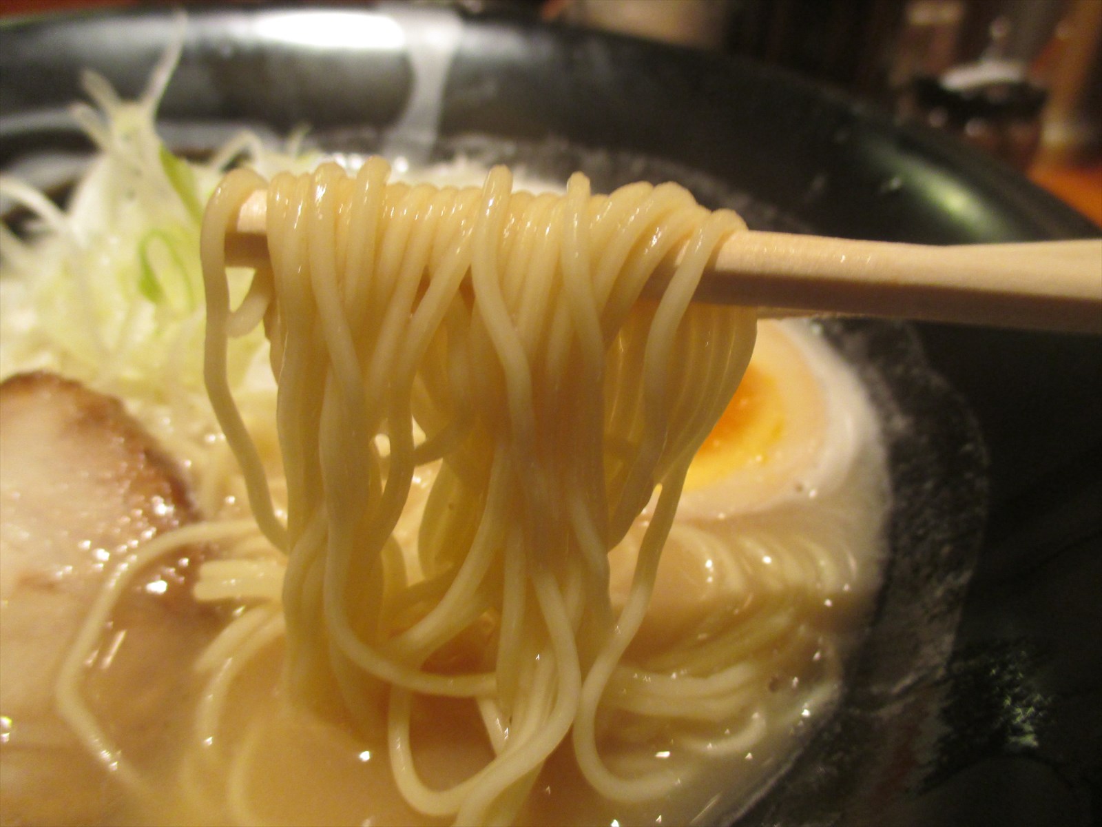麺は中細ほぼストレート。スープにほどよい粘度があるためか拾いの方は上々です。
