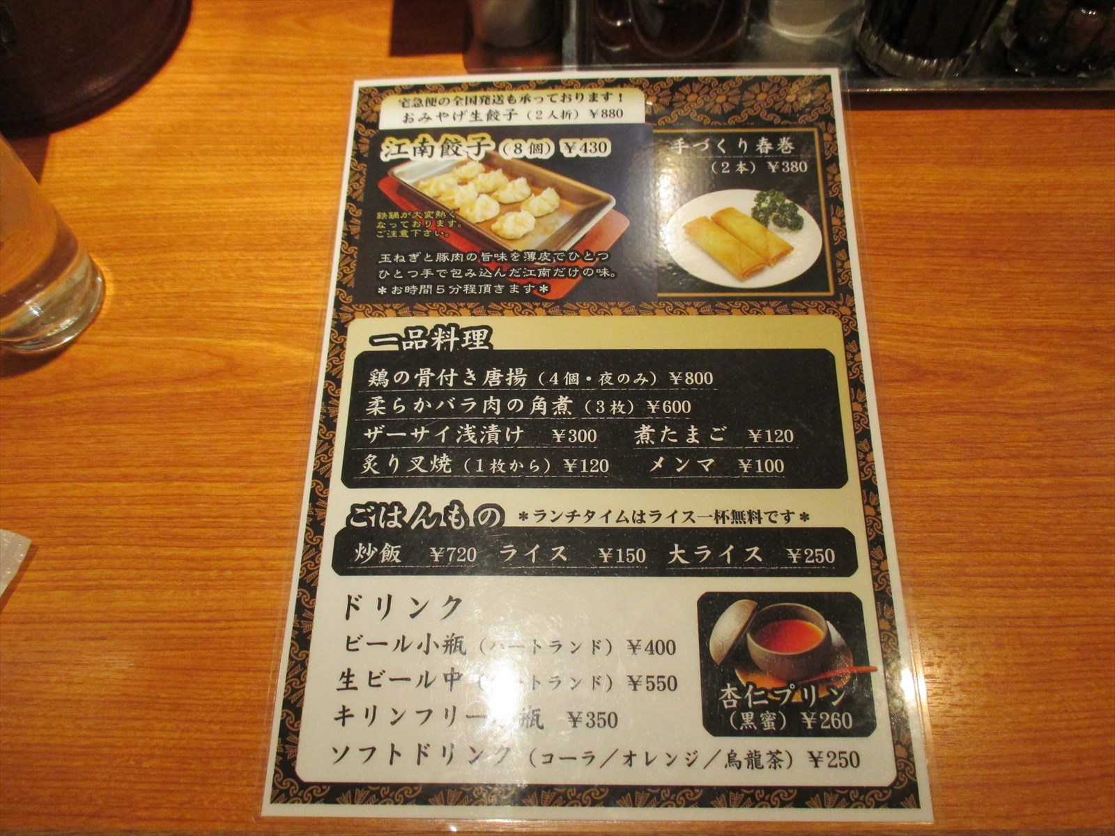 サイドメニューです。餃子も自慢のようですが一品料理の後半はトッピングのようで。