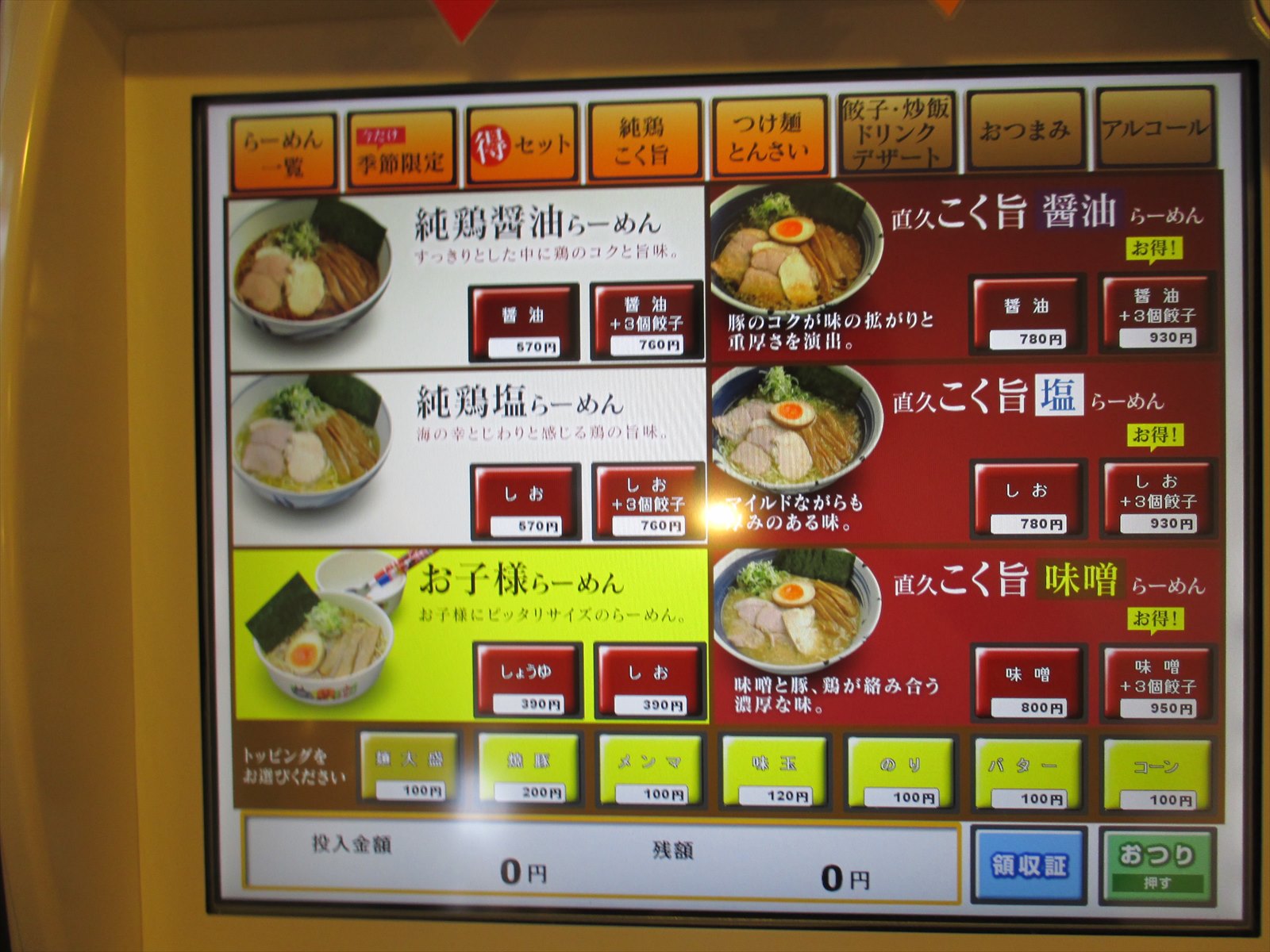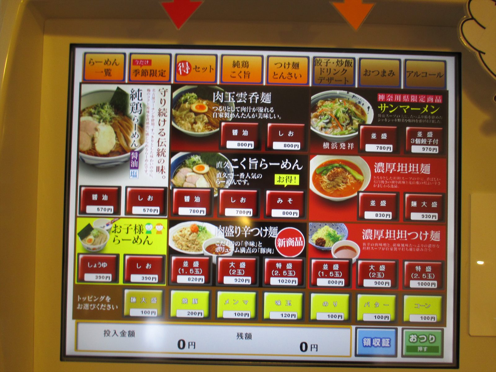 基本のラインナップはらーめん一覧から。