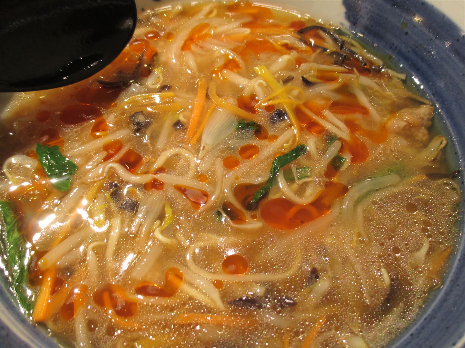 ある程度食べたらまずはラー油、次いでお酢を追加で酸辣風にするのが自分の中では定番です。ピリ辛で酸っぱく野菜をいっぱい。ボリュームあってもさくっと食えちゃう。