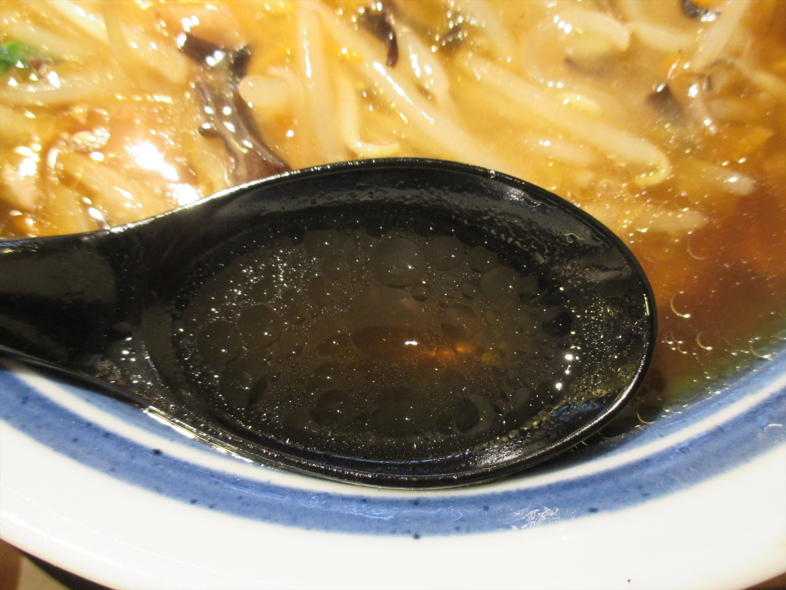脇からそっとスープをすくってみるととても分かりやすいオールドスタイルな鶏のスープ。ほんのりと炒め野菜の風味が移っていますが元のスープもなんとなく分かります。