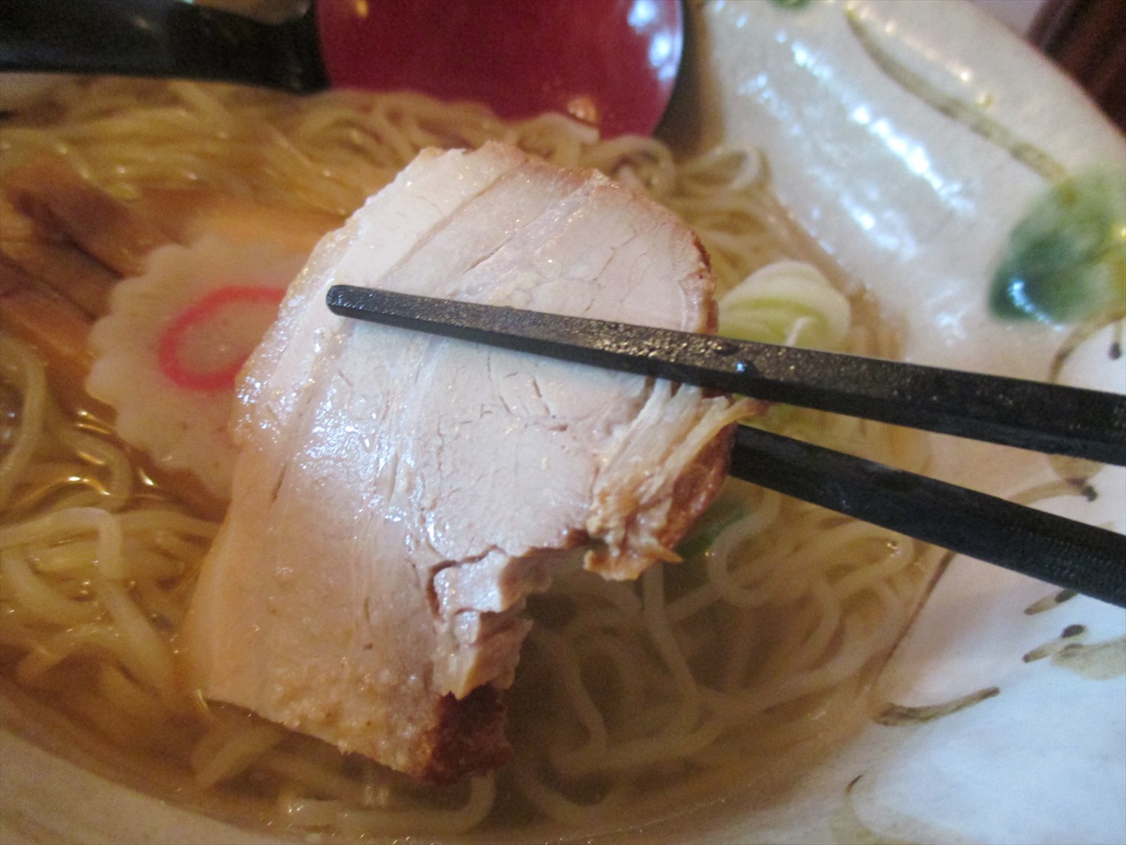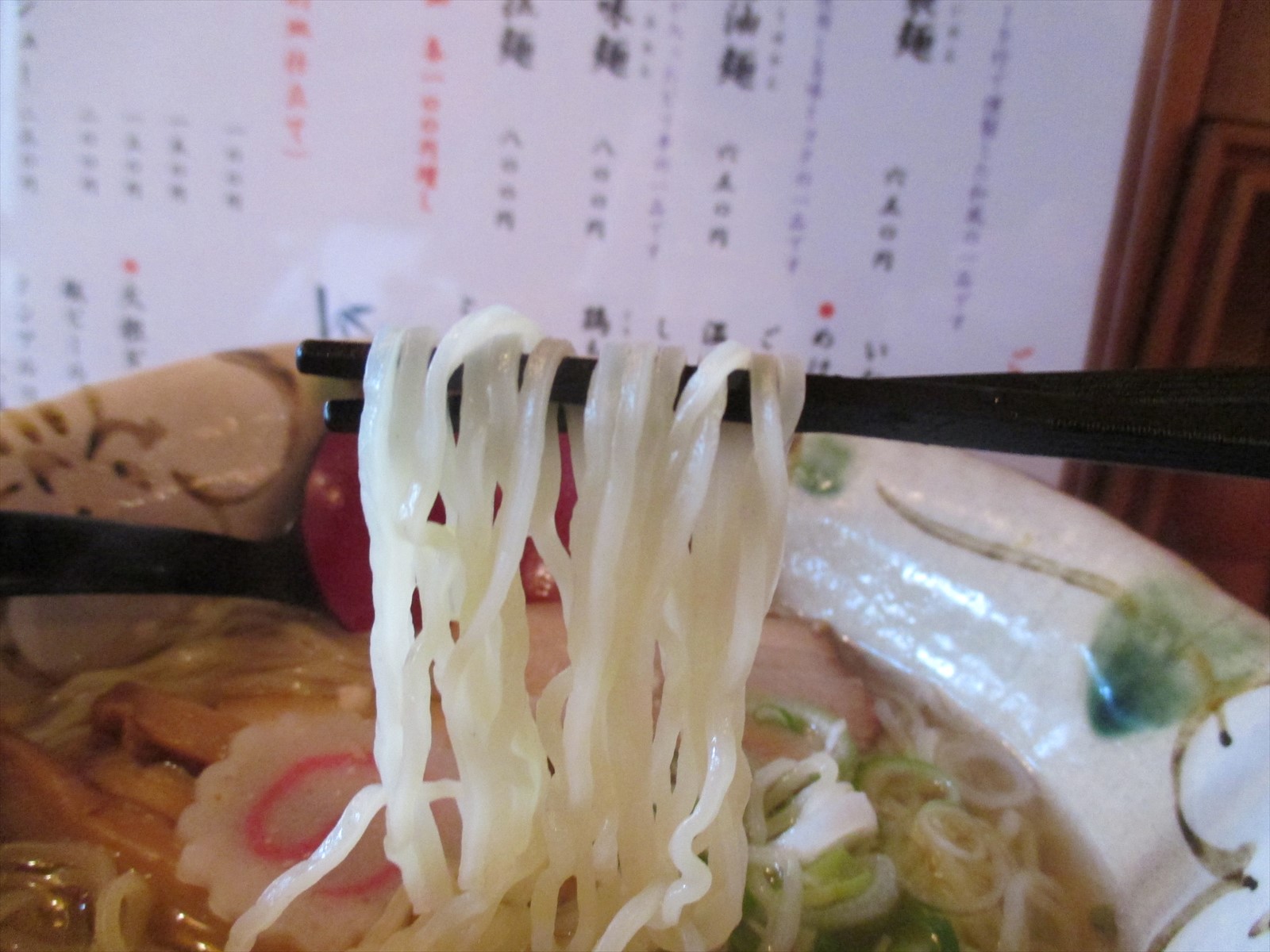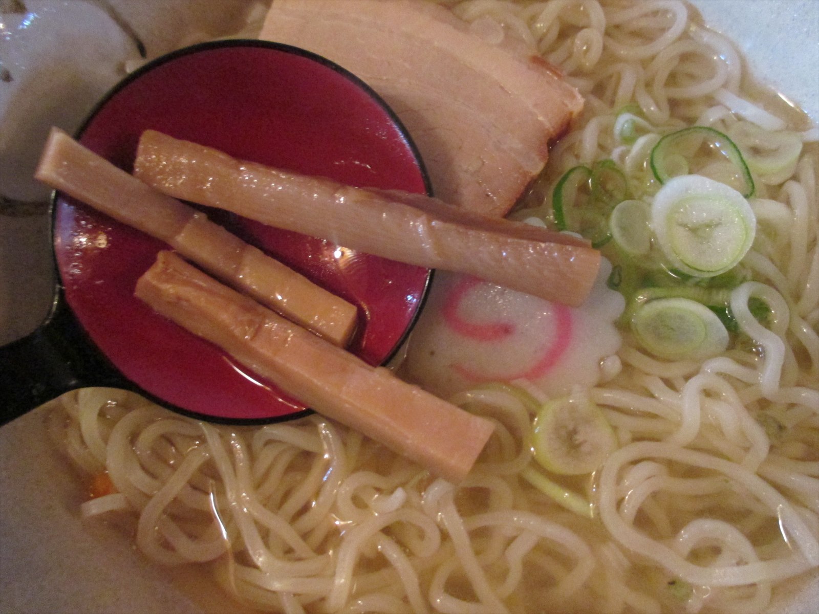 メンマは固めコリコリ繊維っぽい食感でクセなく醤油の味がしながらも繊細なスープの邪魔をしていません。ネギは少しですが辛さと歯ごたえがアクセントに。ともに名脇役となってます。