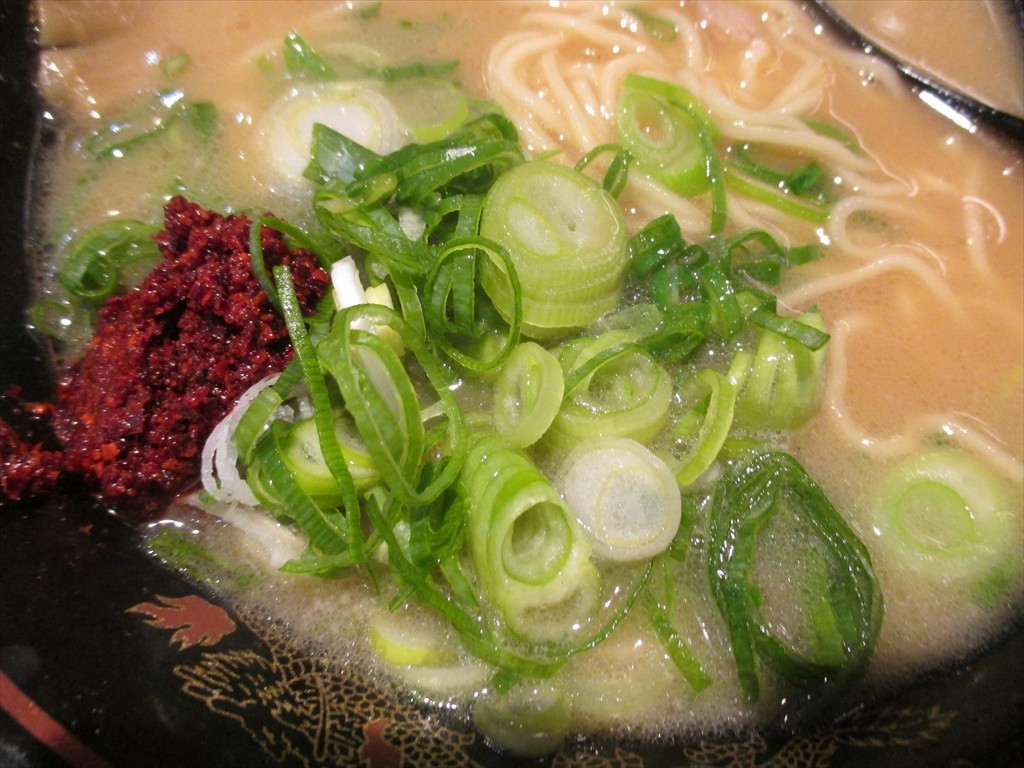 無料トッピングのネギはトングでガツッとひとつかみもらってうま味とうがらしやらも多めにひとすくい。そんなに入れたわけではないですがネギ盛り放題はいいですね。うま味とうがらしはあんま辛くはなかったけどちょっとワイルドな風味が混じって目先を変えてくれました。