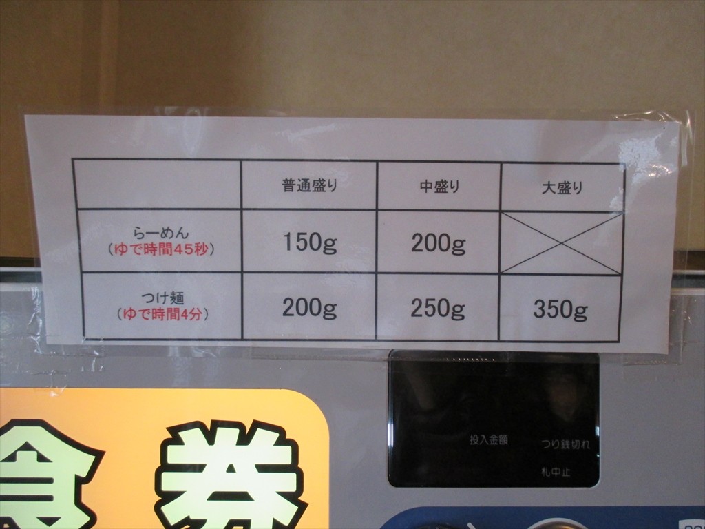 券売機の上には麺量と茹で時間の案内がありましたが、らーめんの茹で時間45秒、細麺であるとしても提供までの時間も含めるとそれくらいがベストになるんでしょうかね。