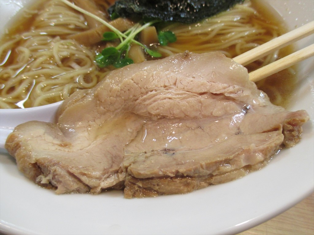 チャーシューは1センチ近くはありそうな極厚のバラ。この厚みでも箸でほぐれる柔らかさで噛むごとにしっとりとしたオニクの旨みを味わえる逸品です。