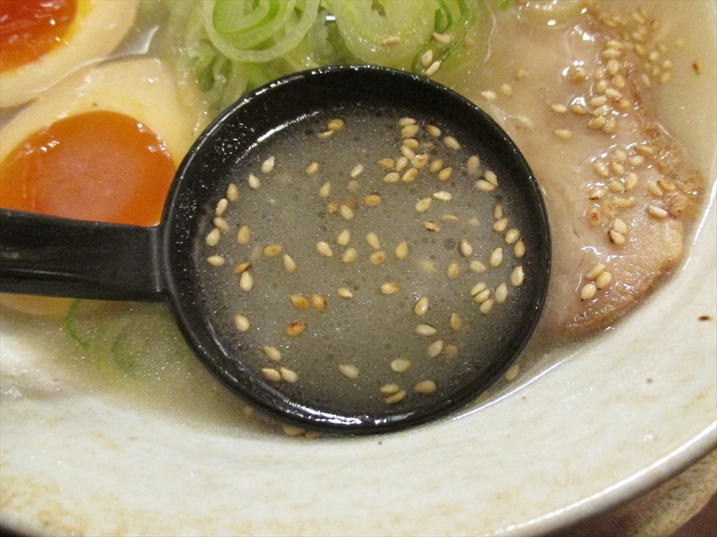 微妙に白濁しきらないスープからはなめらかまったりした動物系の旨みのすぐあとに魚介が畳み掛けてきます。多く散らされるゴマの弾ける食感と風味が目先を変えてくれてたまらない美味しさ。後半に少しタラゴンを使ってみましたが上質なスープがさらに上品になりました。