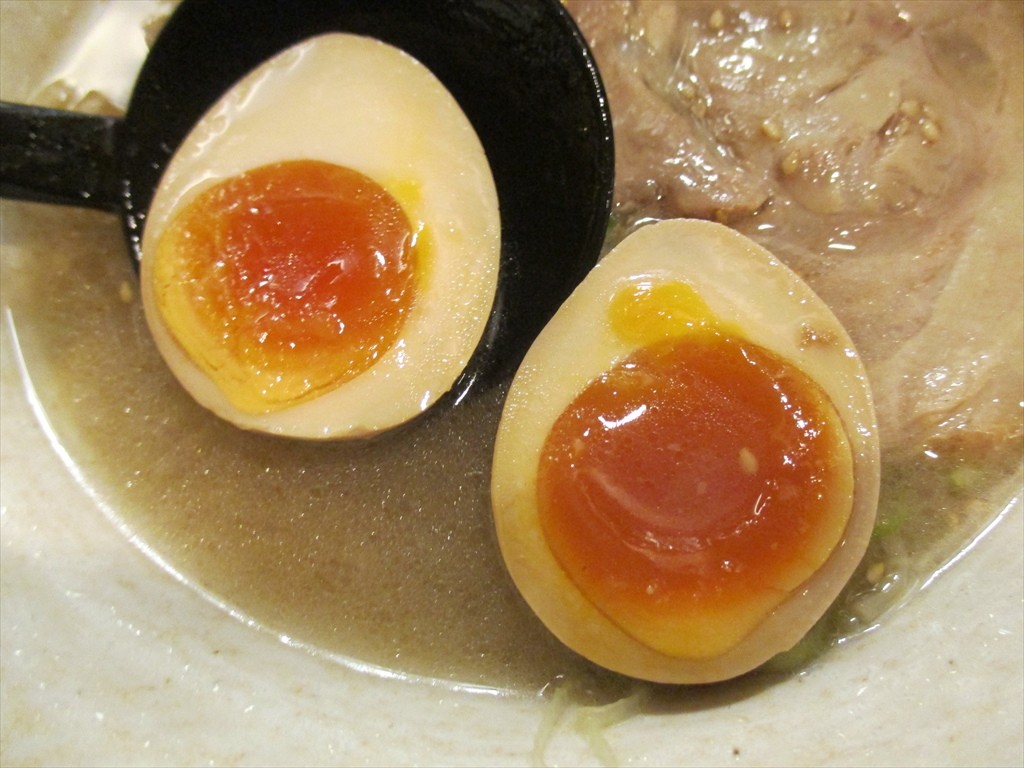 黄身がゼリー状に仕上げられた味玉はちょっと甘めな味付けが黄身の芯までしみこんで玉子自体の質の良さをも存分に活かしています。