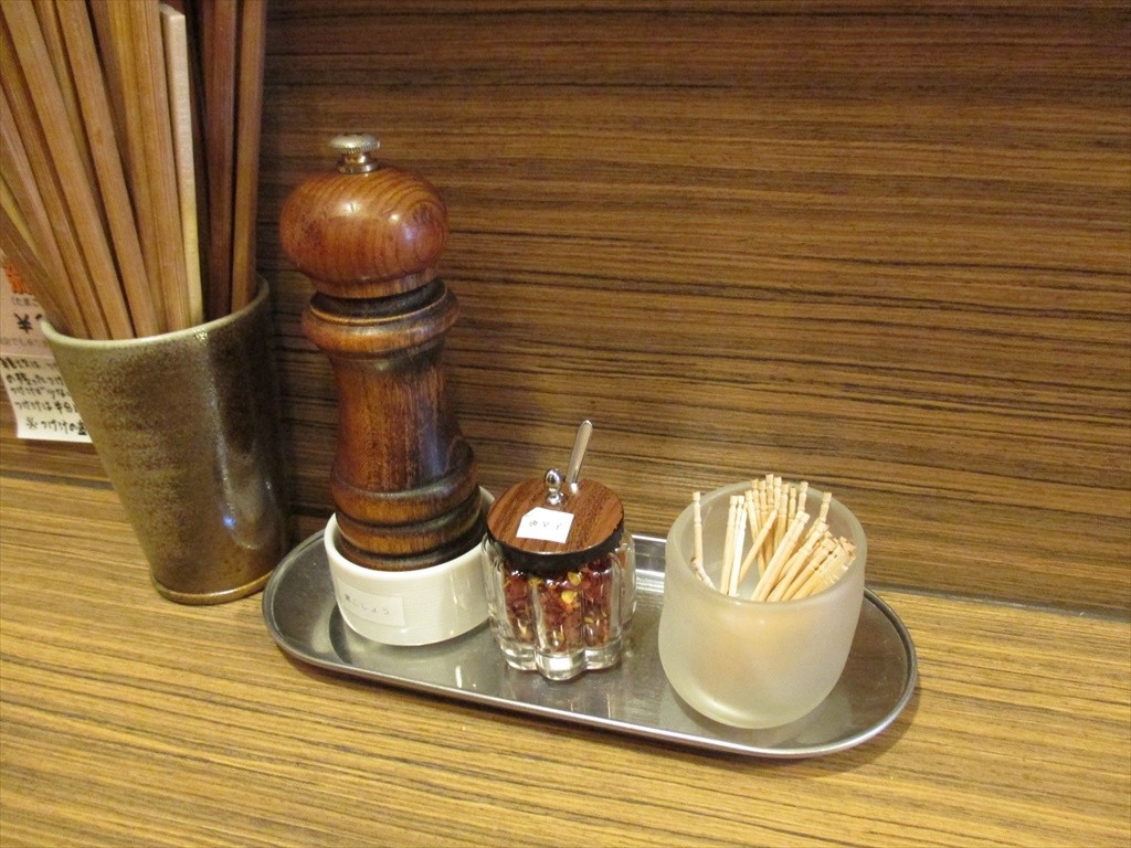 メニューの豊富さに反して卓上にはペッパーミルに粗挽き唐辛子と実にシンプル。自信のほどが窺えます。