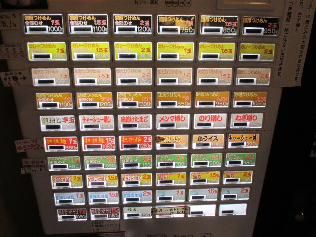 入って左にある券売機。かなり豊富で目移りしてしまいますが自家製麺ということで麺が自慢ということかつけ麺がトップに来ています。最下段にある鴨南蛮つけそばは毎年冬の定番メニューのようですね。ネット上で多くの情報が拾えました。