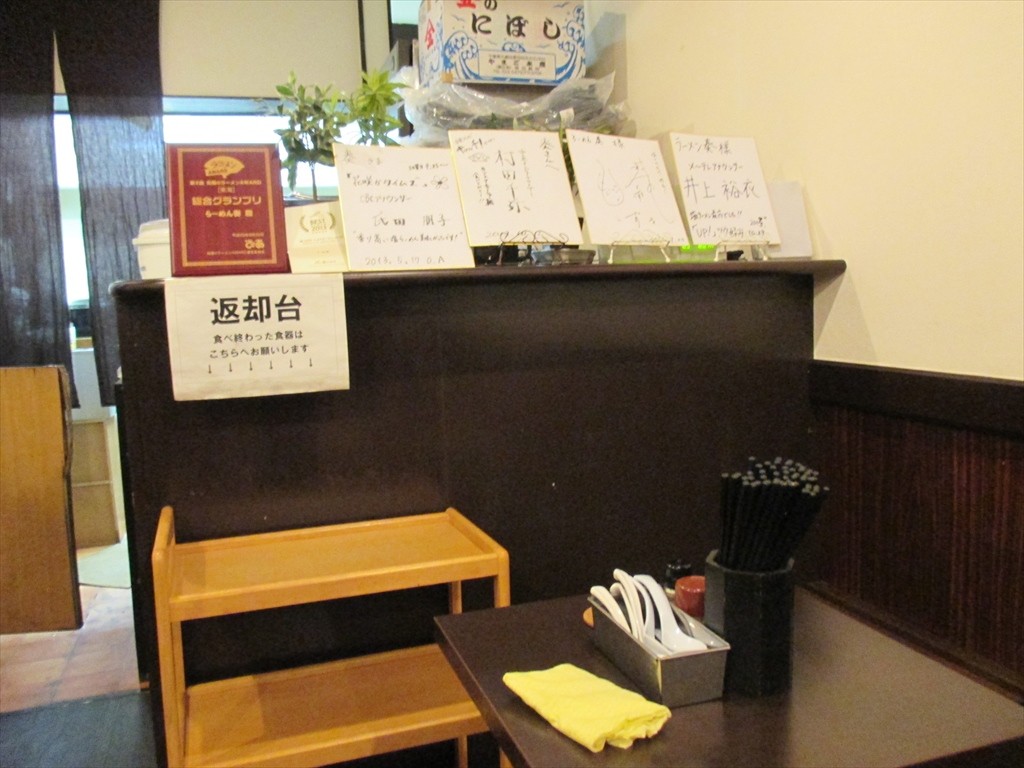 出来たラーメンは席まで運んではくれますが食べ終わったら返却台まで戻すシステムになってます。