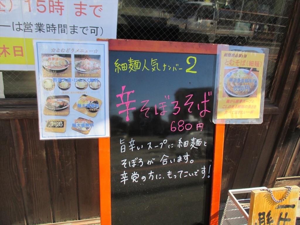 店頭にあるスタンド看板。二郎インスパのみのお店かと思いきやあっさり系もやってるのか。