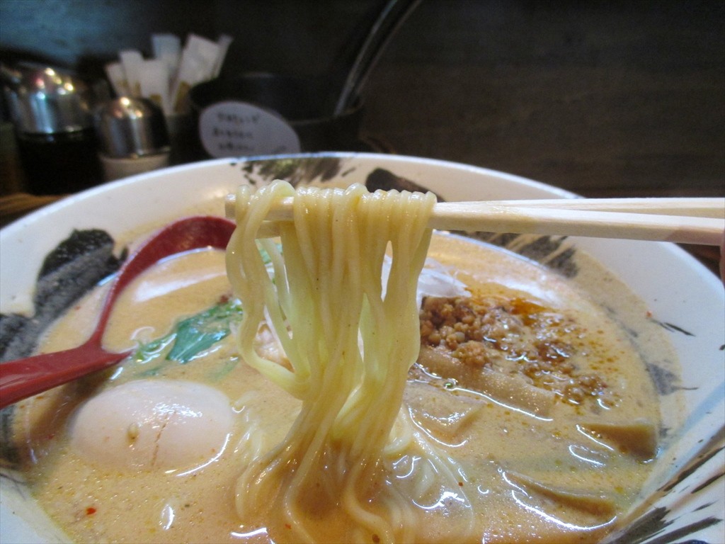 こちらではすべてのラーメンに細・太の選択が出来ますが今回はこちらの担々麺では初の細麺を選択。もっちりした太麺もいいですがサクッとした細麺も良く合いますよ。